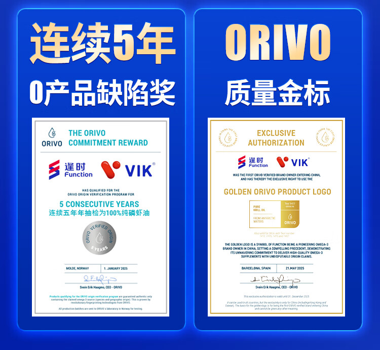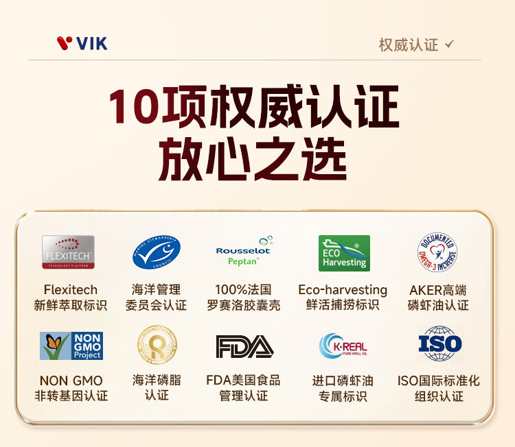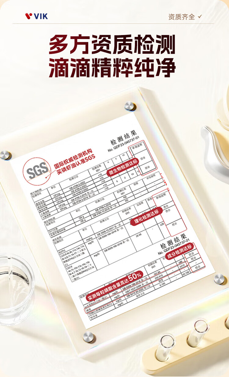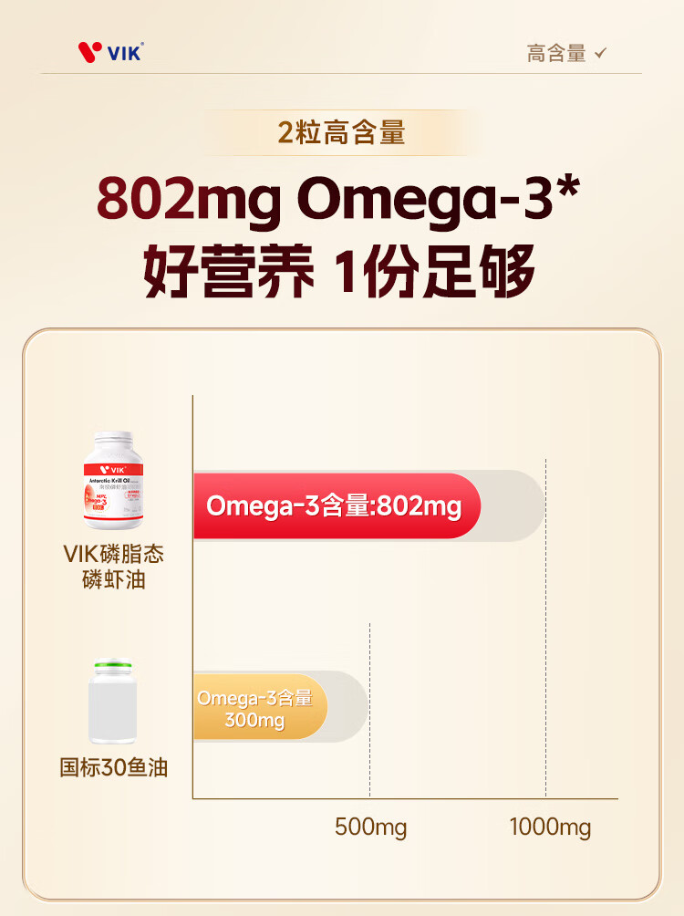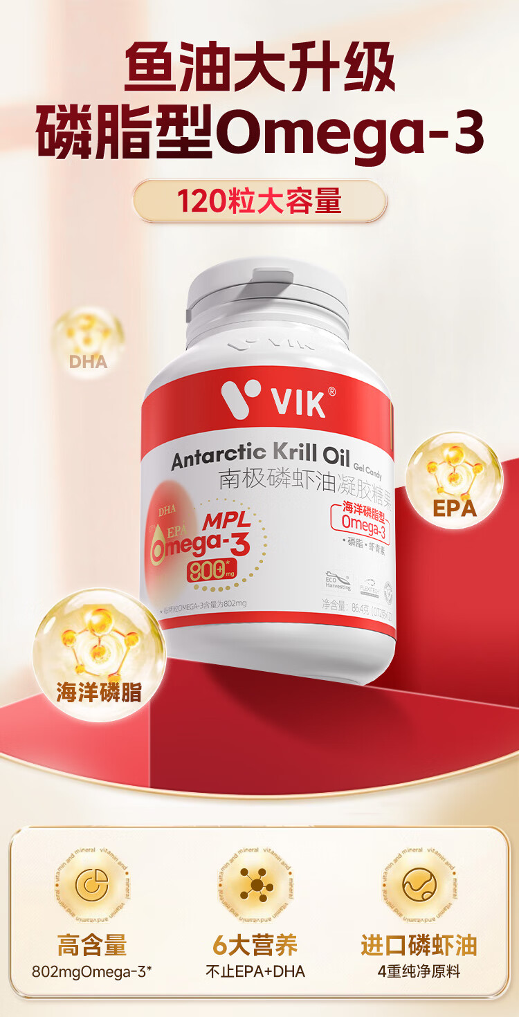 vik逢时 80%高纯鱼油复配进口南极磷虾油802mg Omega-3 DHAEPA 120粒