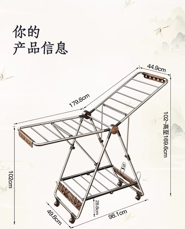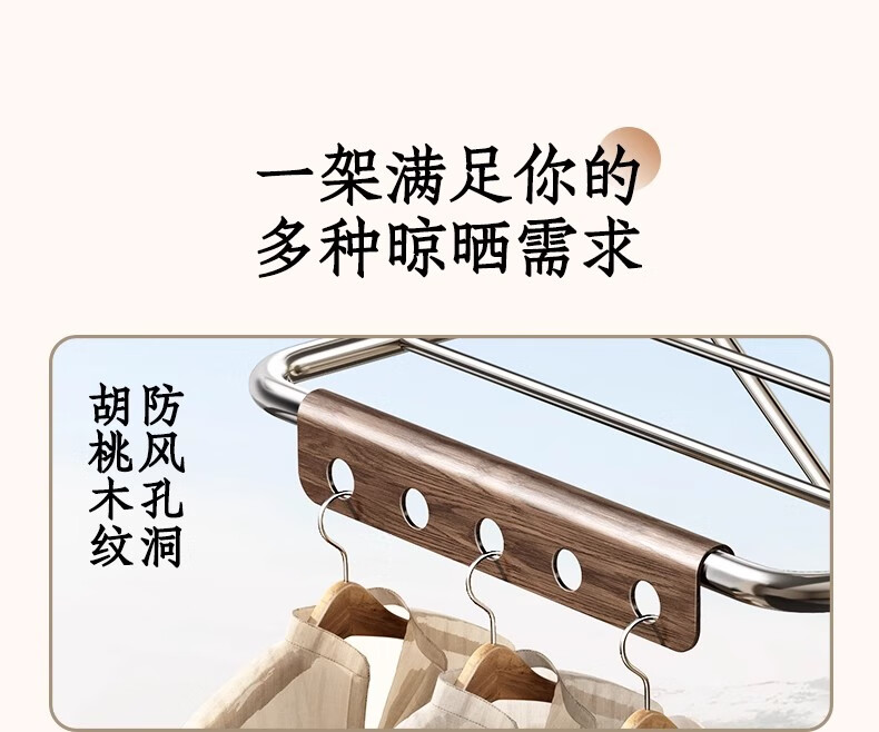 户璃德国不锈钢阳台落地折叠晾衣架落地阳台家用晒被子神器多功能凉衣 红檀木10双+精美卡纸包装+质保