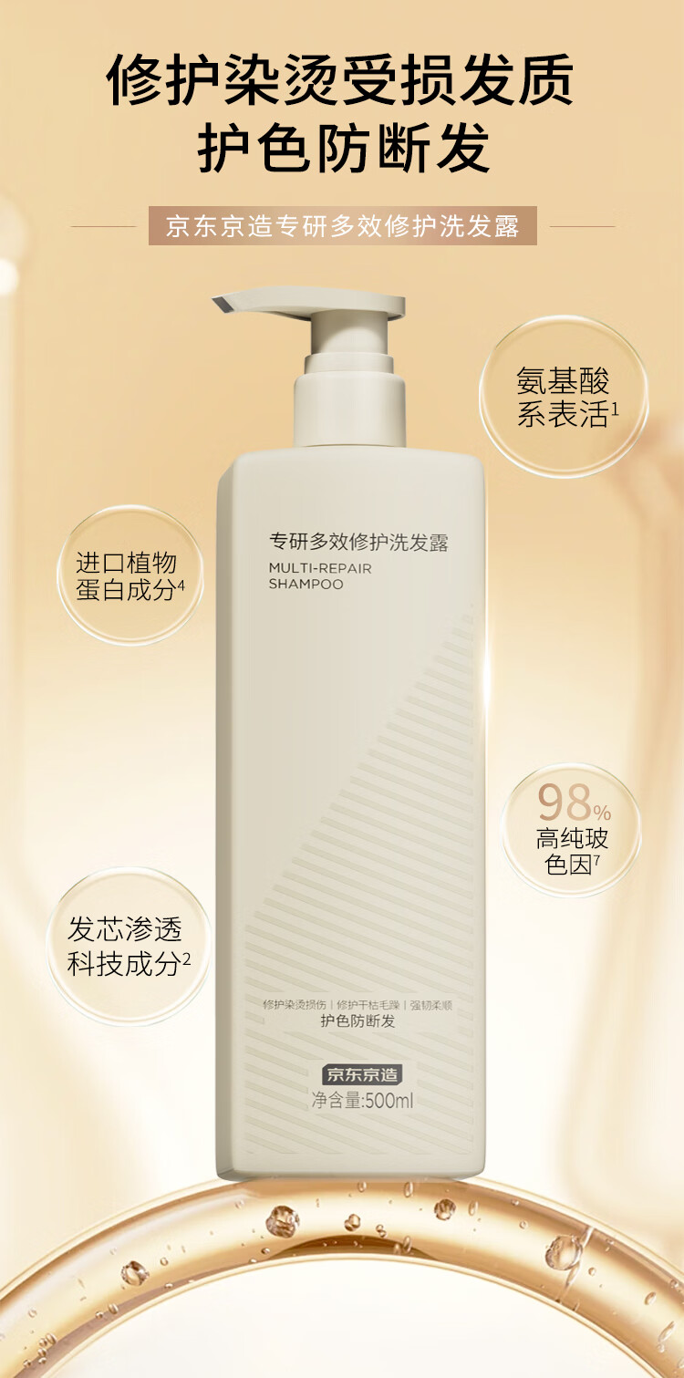 京东京造专研多效修护洗发水500ml 洗头膏染烫护色防断发干枯烫染洗发露