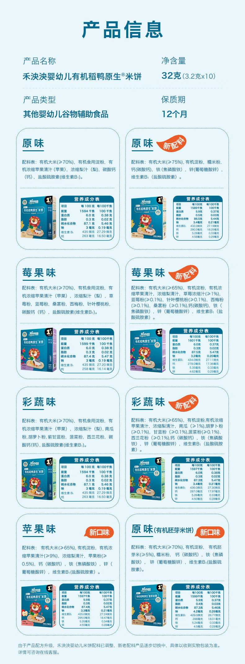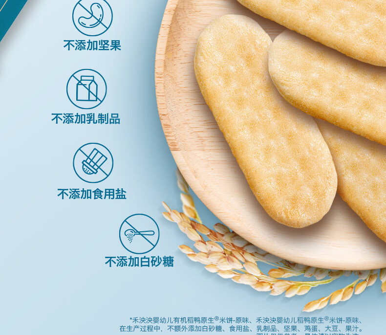 禾泱泱婴幼儿有机米饼稻鸭原生6个月以上婴儿宝宝零食 儿童磨牙饼干 【有机婴标胚芽米】入口易溶高钙米饼原味32g