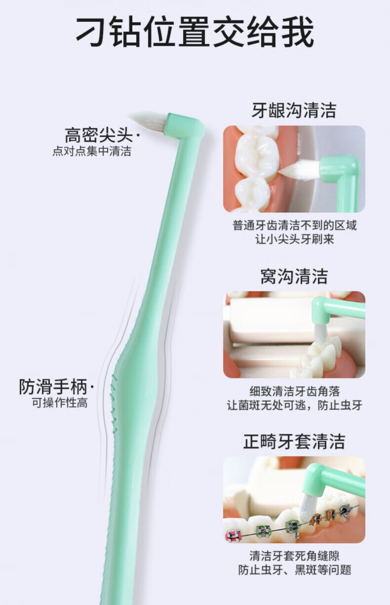 AILUKI日本尖头能刷到智齿的牙刷清理神器窝沟专用细节牙缝刷超细正畸 蓝色尖头1支