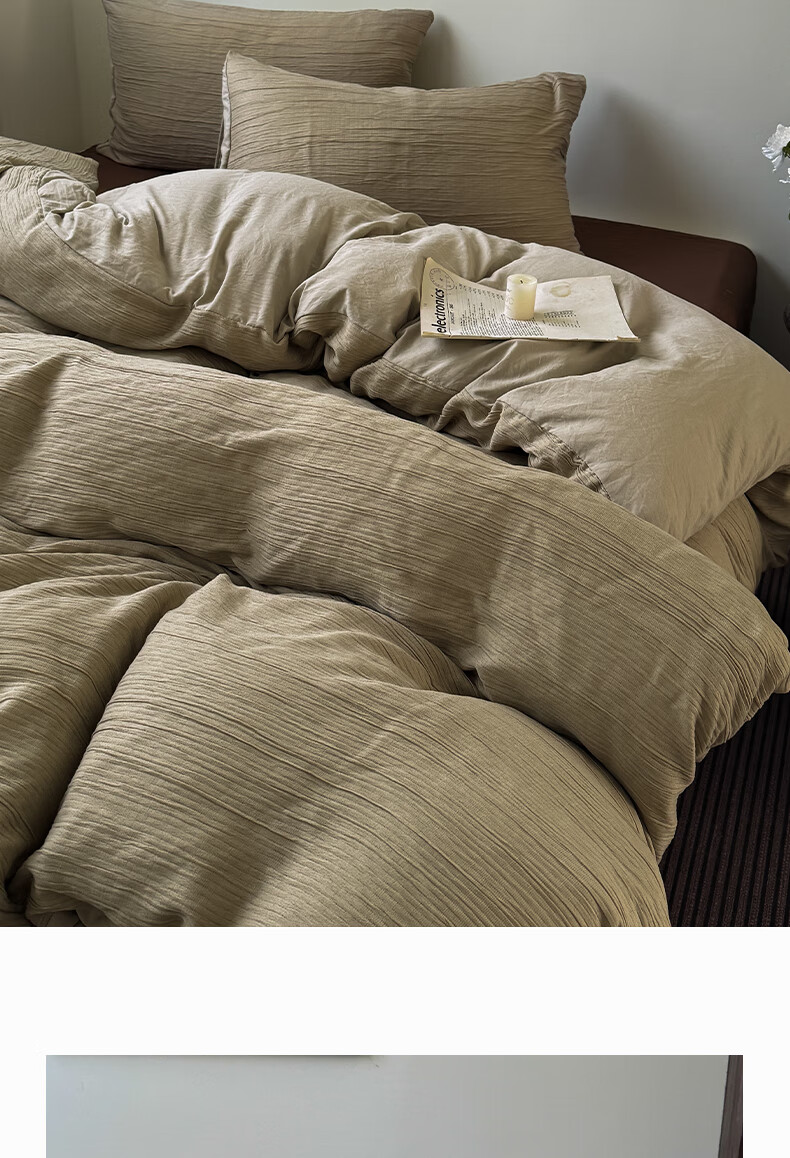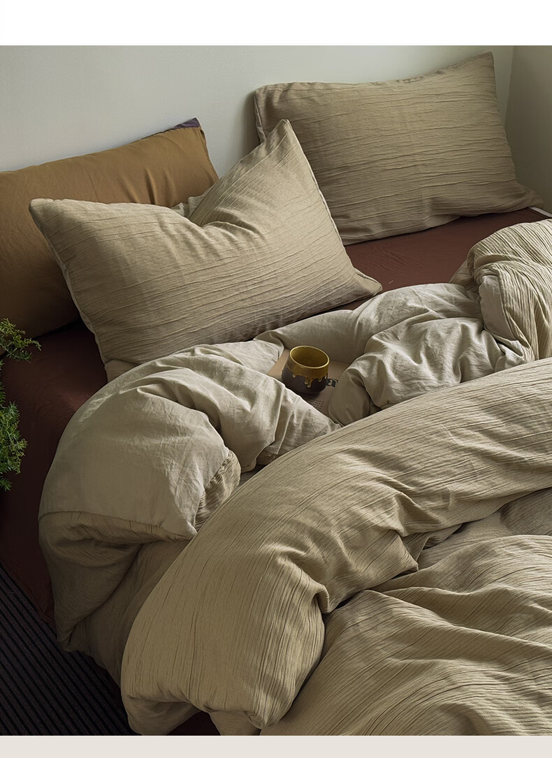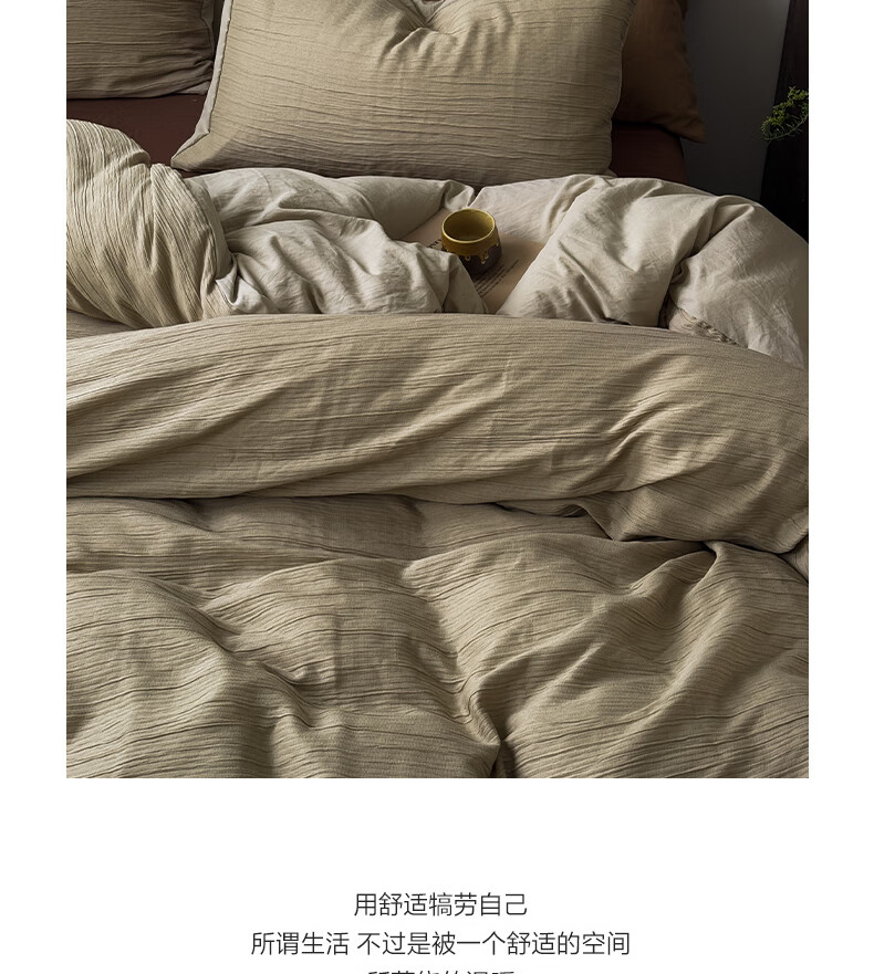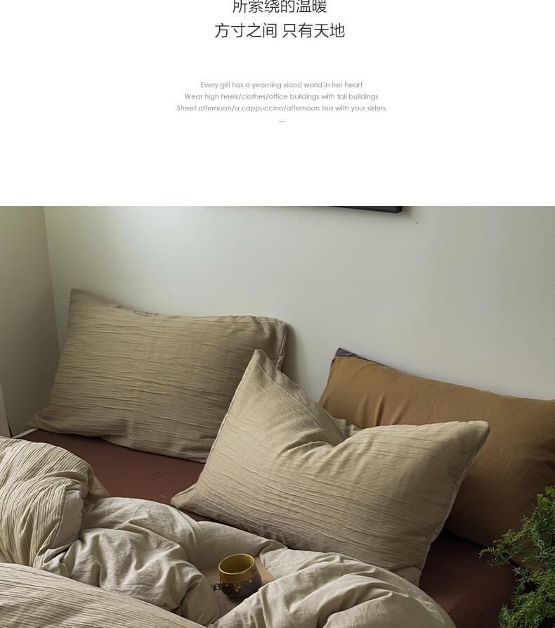 DEATKN德国A类双层纱2025新款四件套床上用品非全棉棉被套被罩床单三件 升级A类认证款-燕麦棕【已质检_小红书】 床单款 0.9m三件套适合150*200cm被子