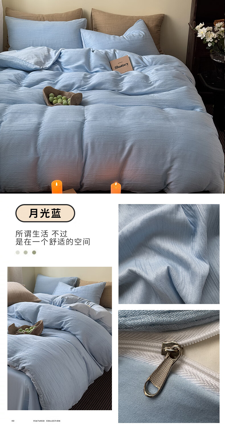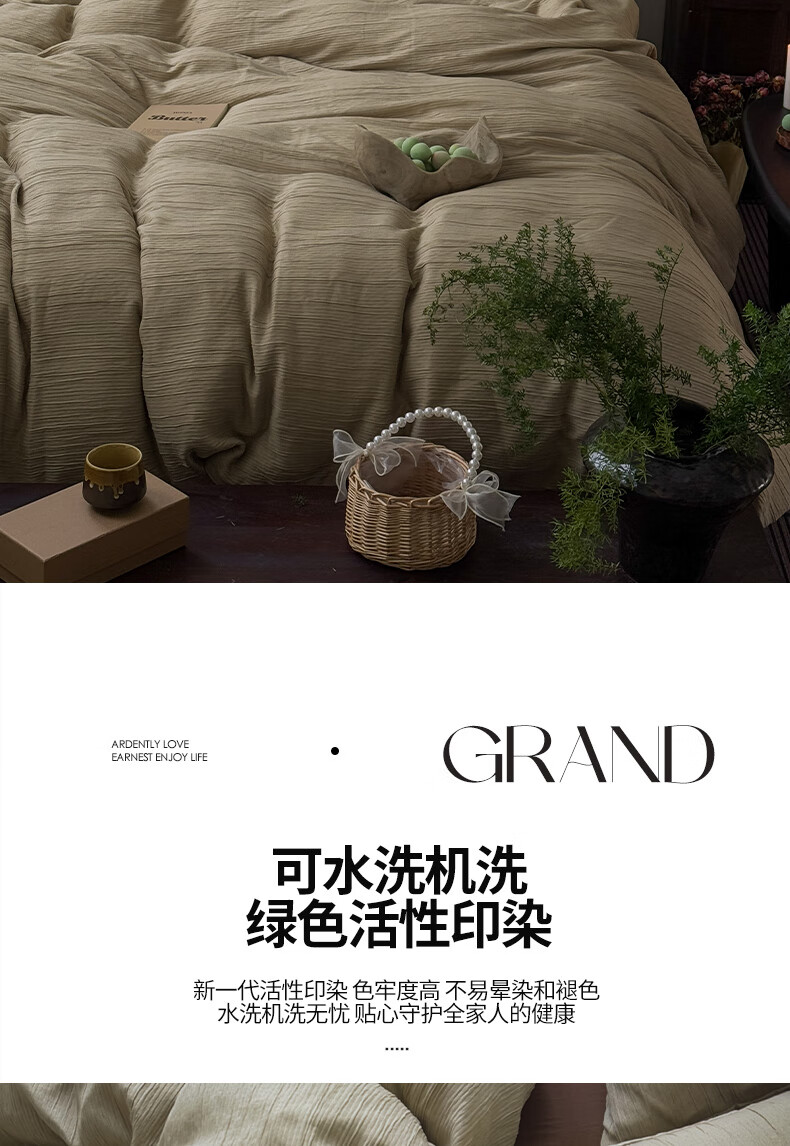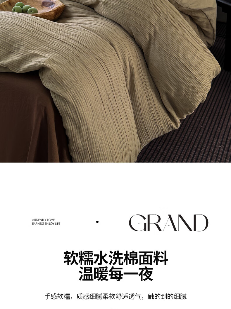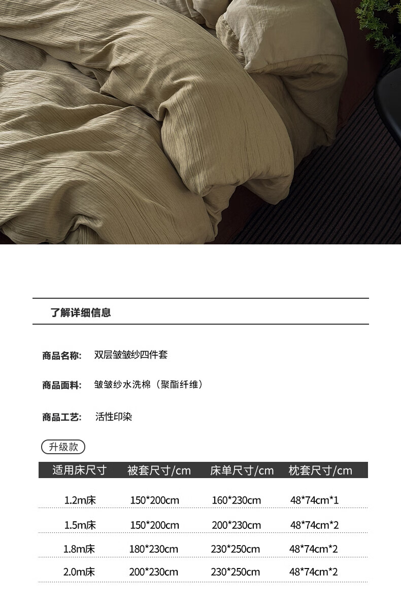 DEATKN德国A类双层纱2025新款四件套床上用品非全棉棉被套被罩床单三件 升级A类认证款-燕麦棕【已质检_小红书】 床单款 0.9m三件套适合150*200cm被子