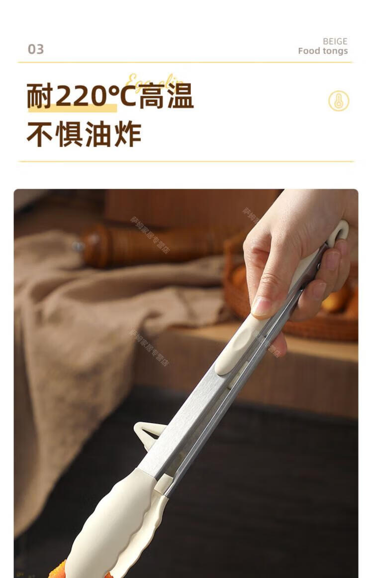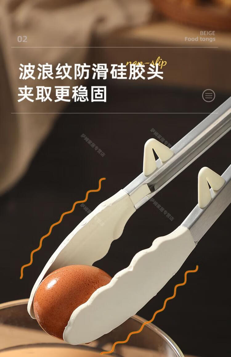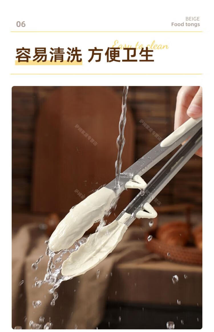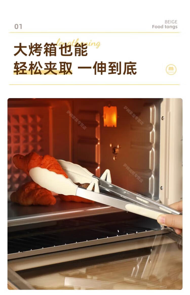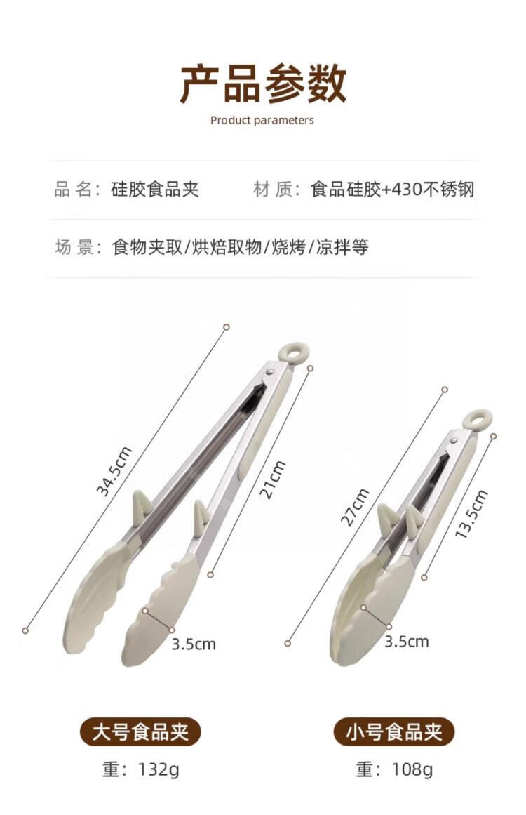 WCZ德国加长硅胶牛排夹 厨房食物油炸煎不锈钢烧烤专用食品夹子 大号食品夹加长防烫 不锈钢+硅胶