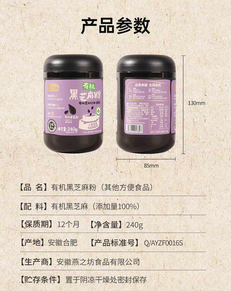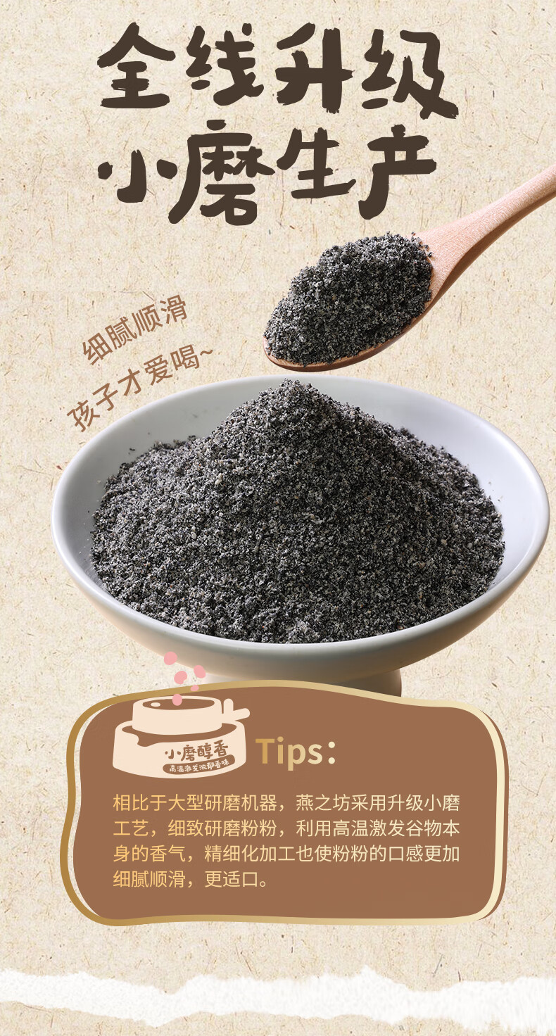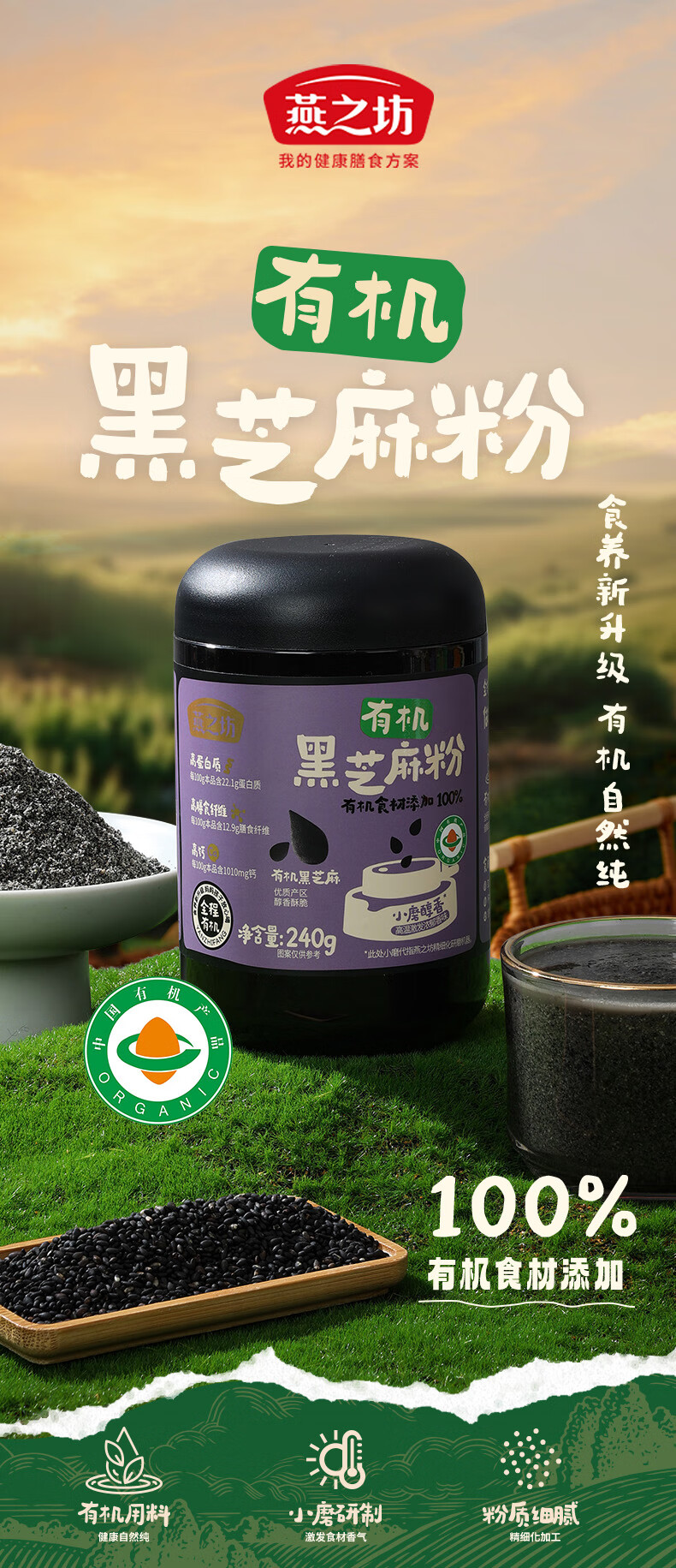 燕之坊有机黑芝麻粉240g熟纯黑芝麻糊无添加营养早餐无糖高钙即食代餐粉