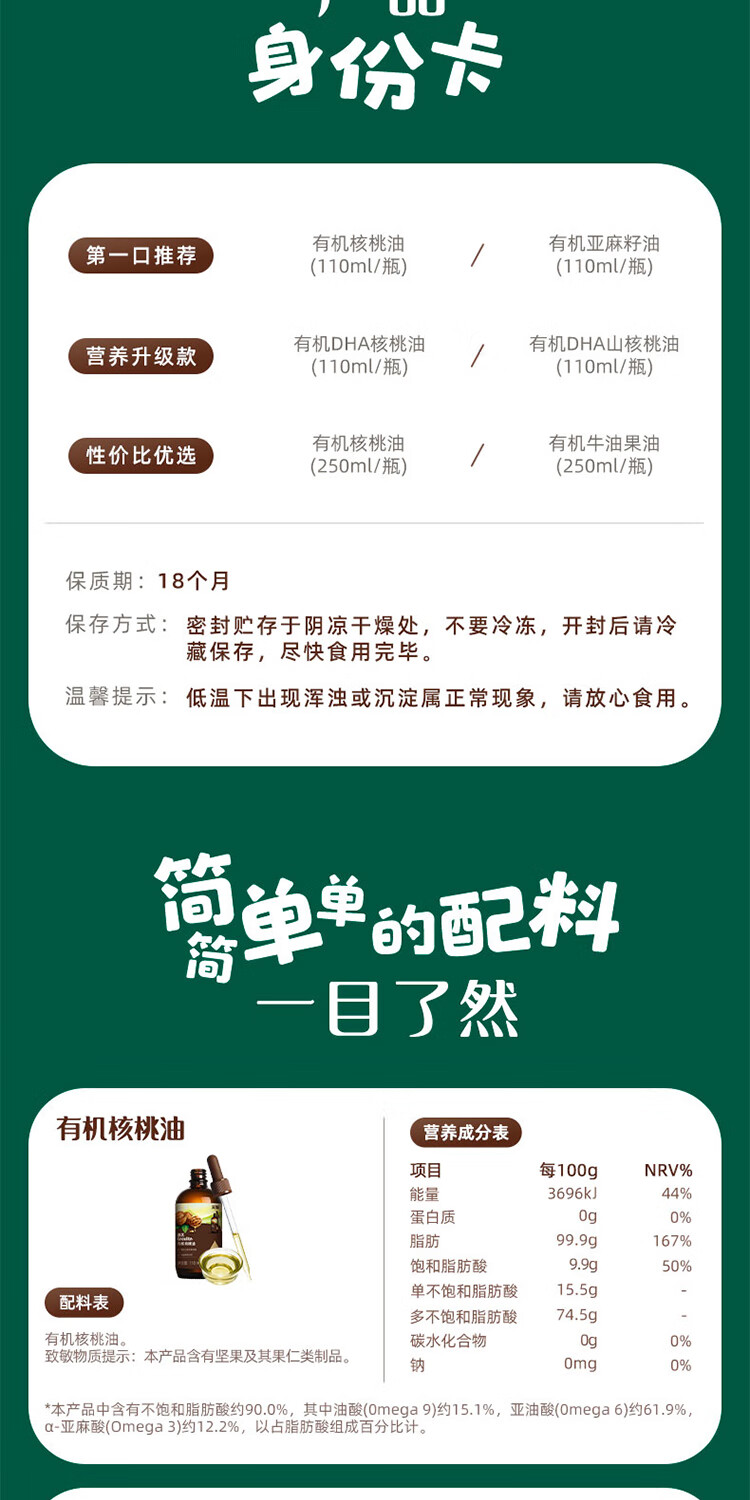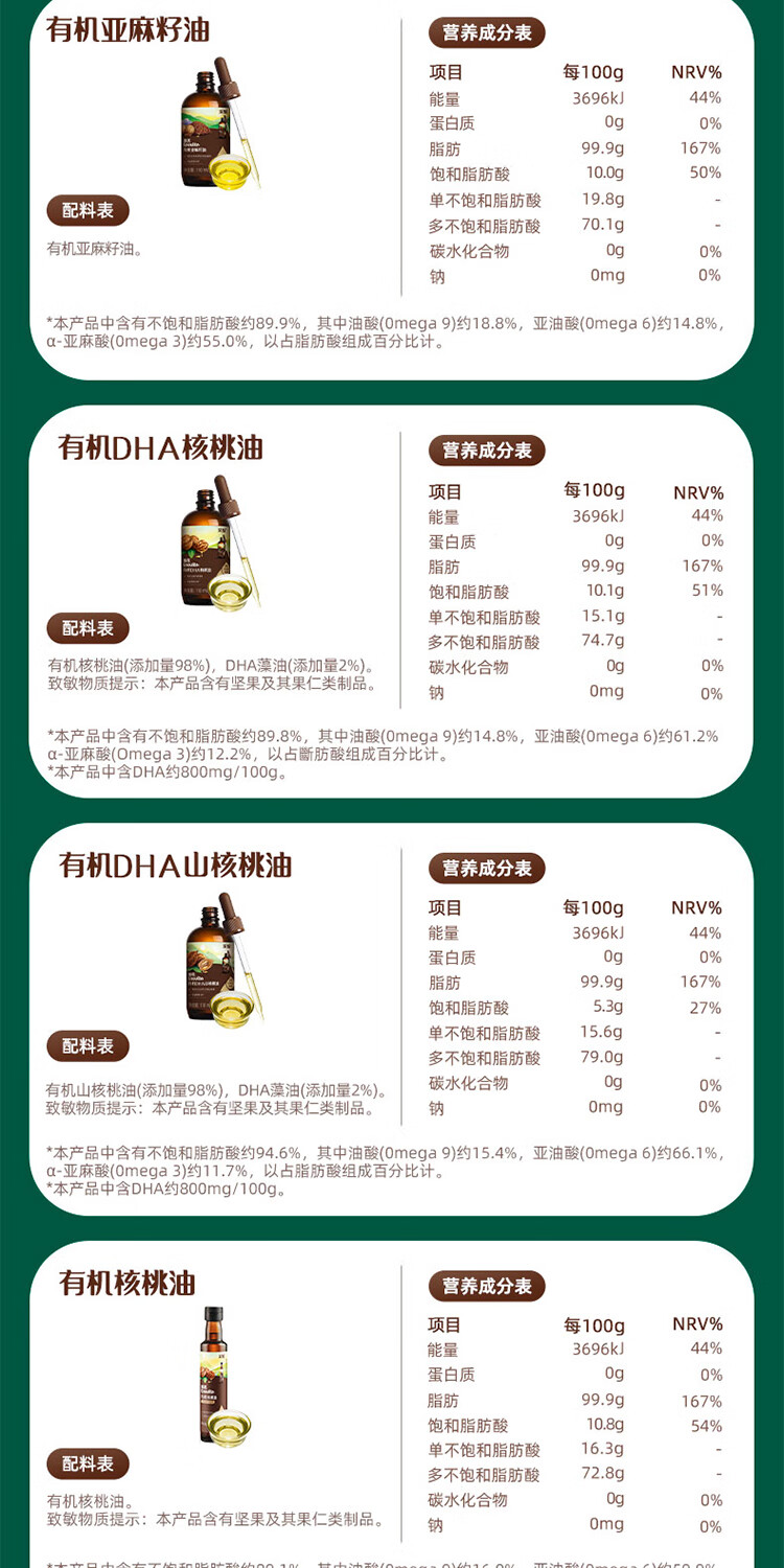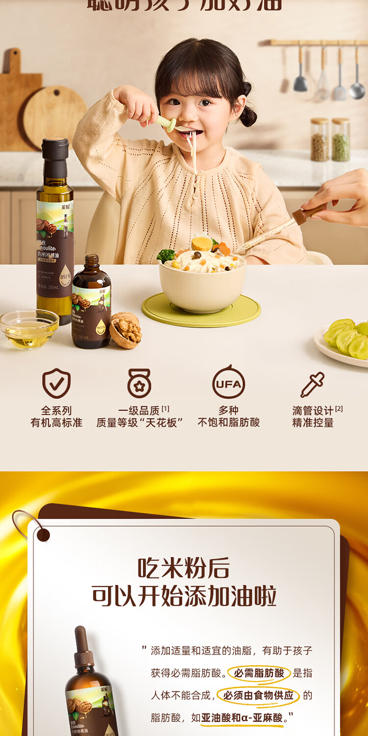 英氏宝宝有机DHA核桃油亚麻籽油牛油果油辅食油调味油110ml 【满满亚麻酸]有机亚麻籽油110ml