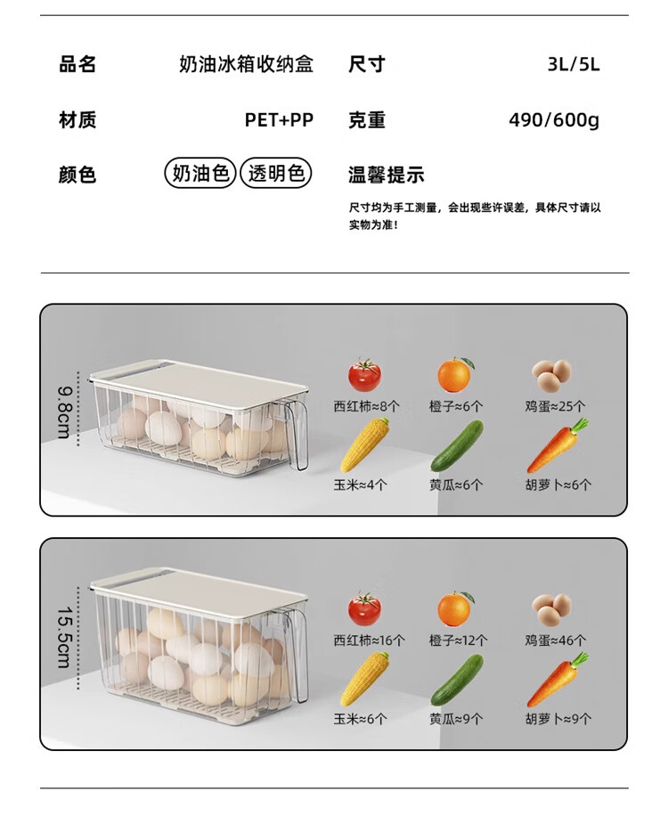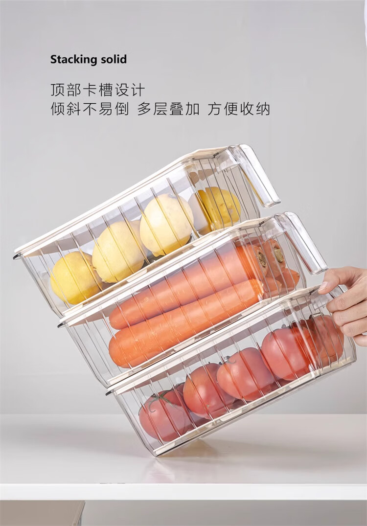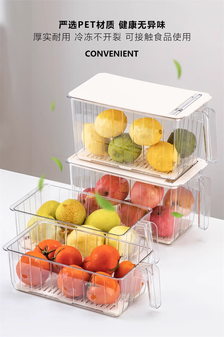 木格格冰箱专用收纳盒食品级计时保鲜冷藏冻专用厨房水果蔬菜沥水储物盒 5升-1个 【计时沥水保鲜 】