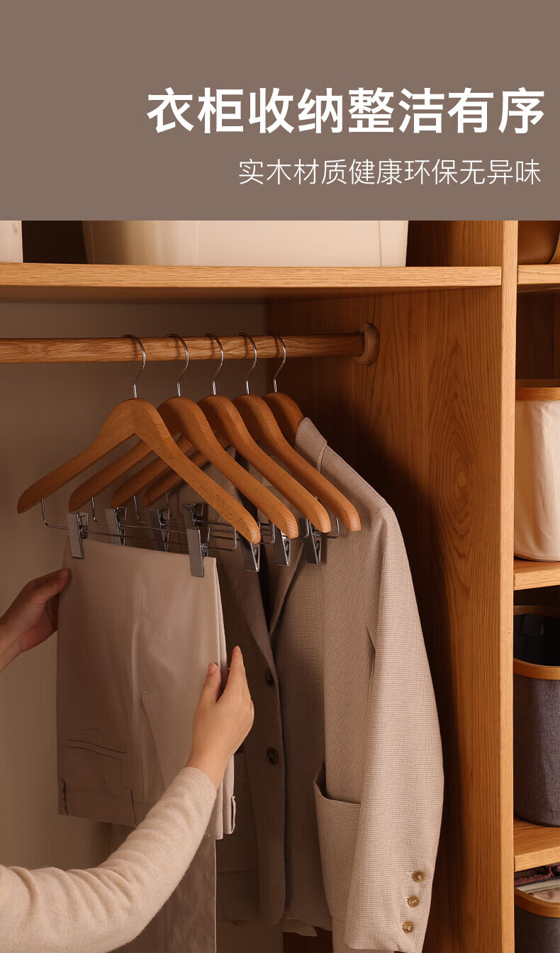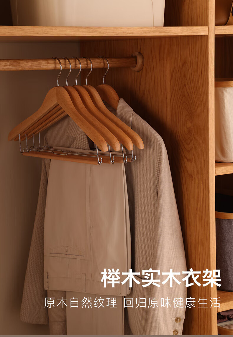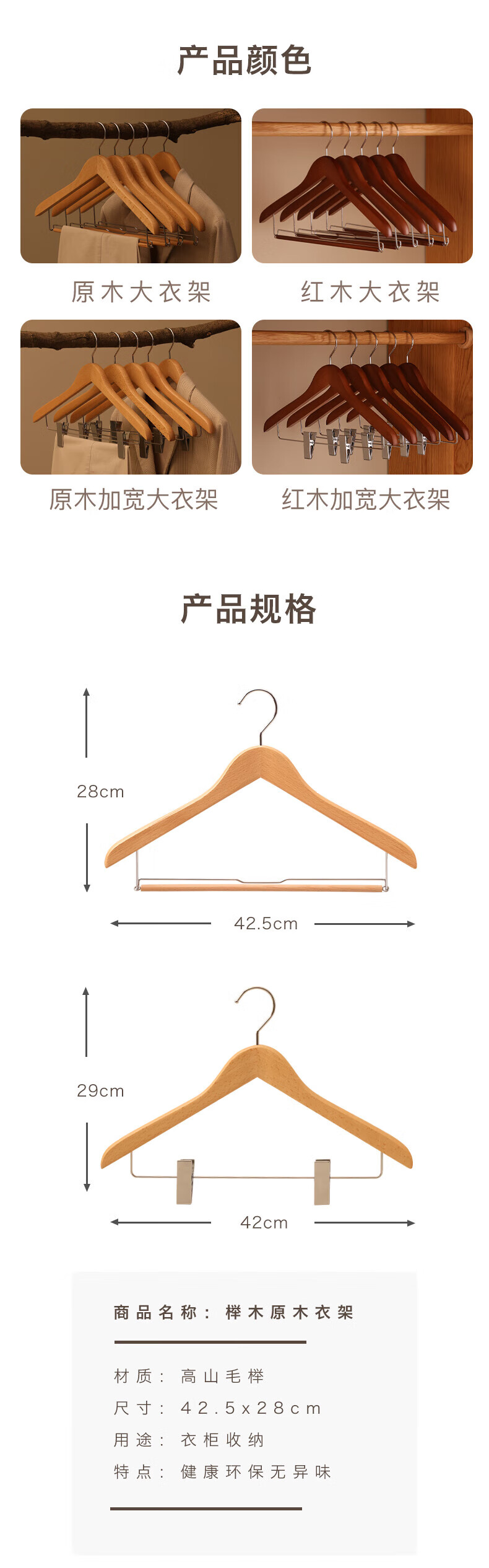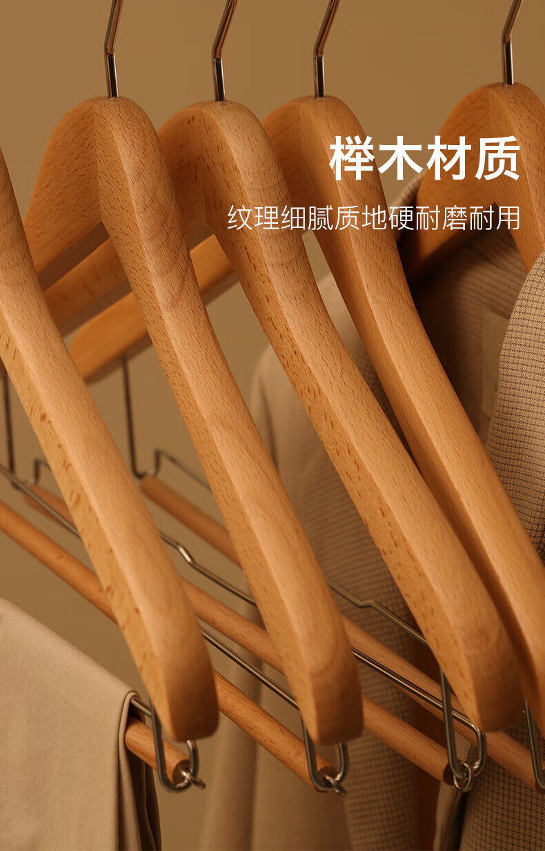 户璃德国高端实木衣架家用挂衣别墅豪宅衣柜榉木加厚带夹子木头裤架夹 标注:尺寸和材质请先了解