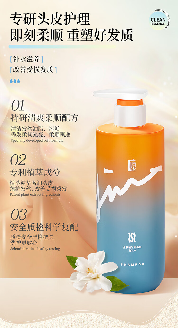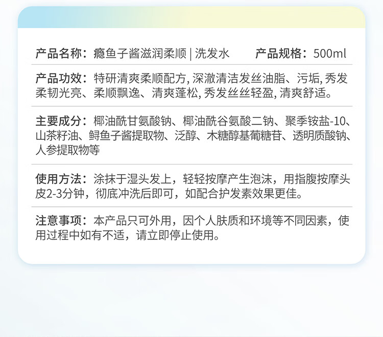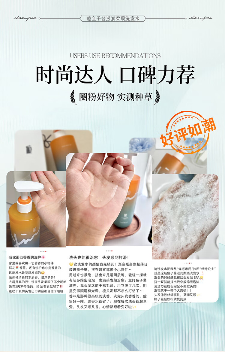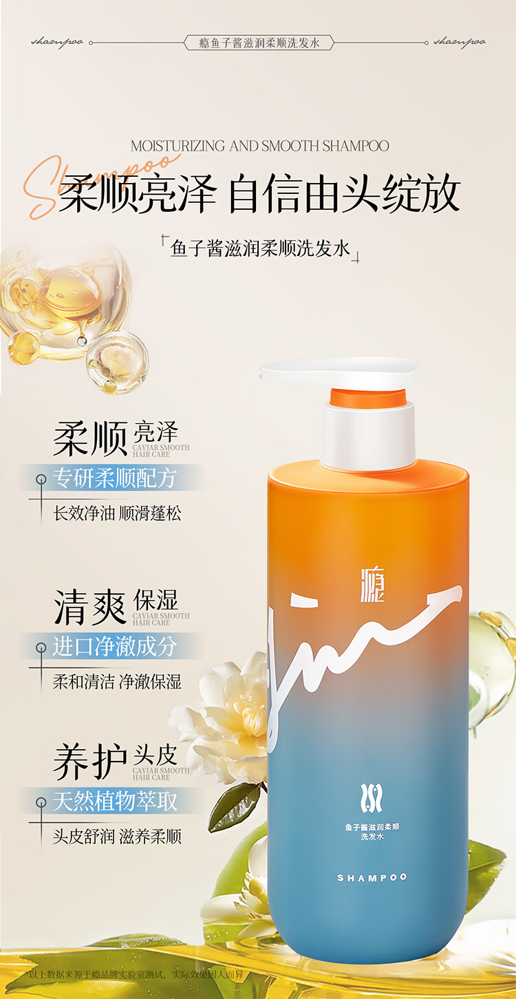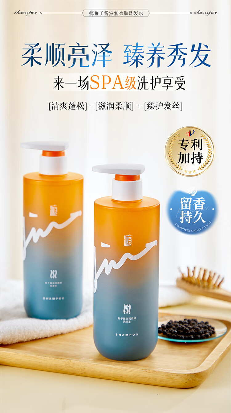 瘾鱼子酱滋润柔顺洗发水液改善毛躁干枯持久留香72H男女士专用500ml