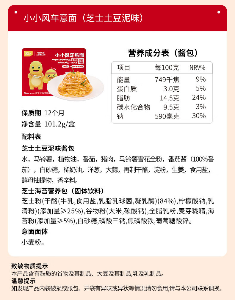 英氏(Engnice)忆小口儿童意面意大利面 宝宝儿童面条番茄牛肉酱风车面条1岁以上 【6盒囤货装】意式风车4+意式螺旋2