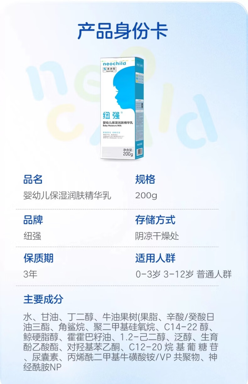 纽强婴儿保湿精华乳婴幼儿童面霜保湿舒缓润肤乳全身可用宝宝身体乳 润肤乳