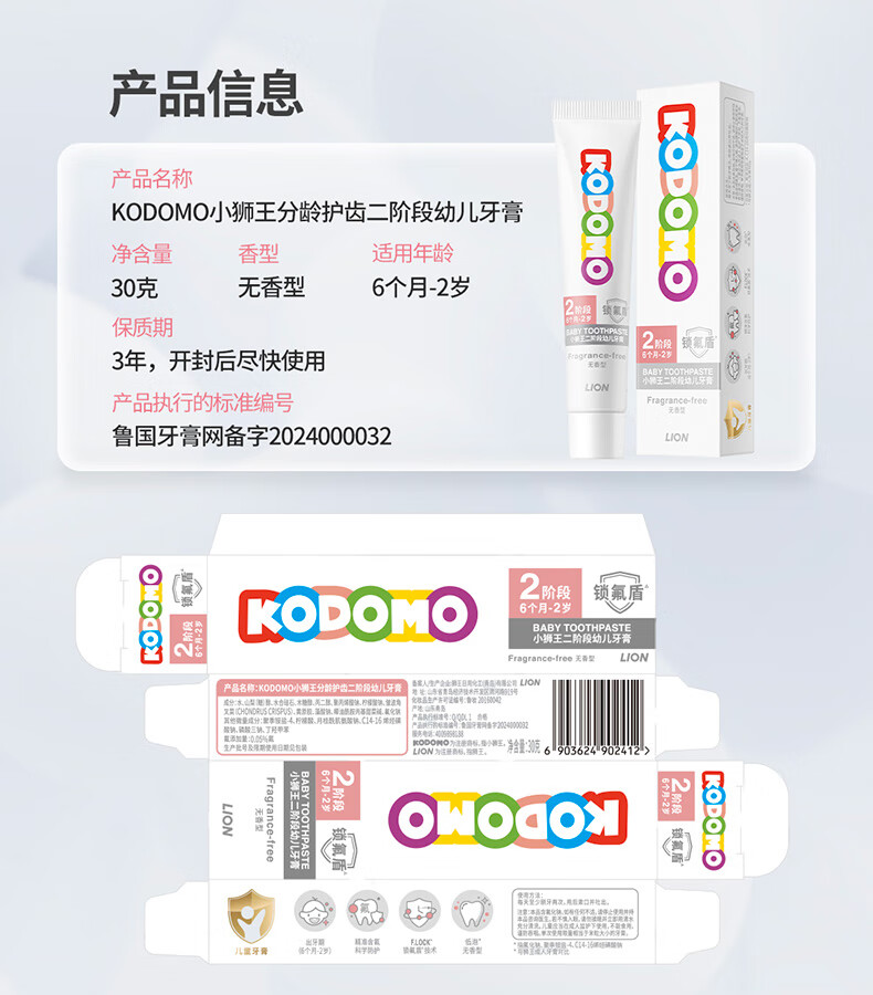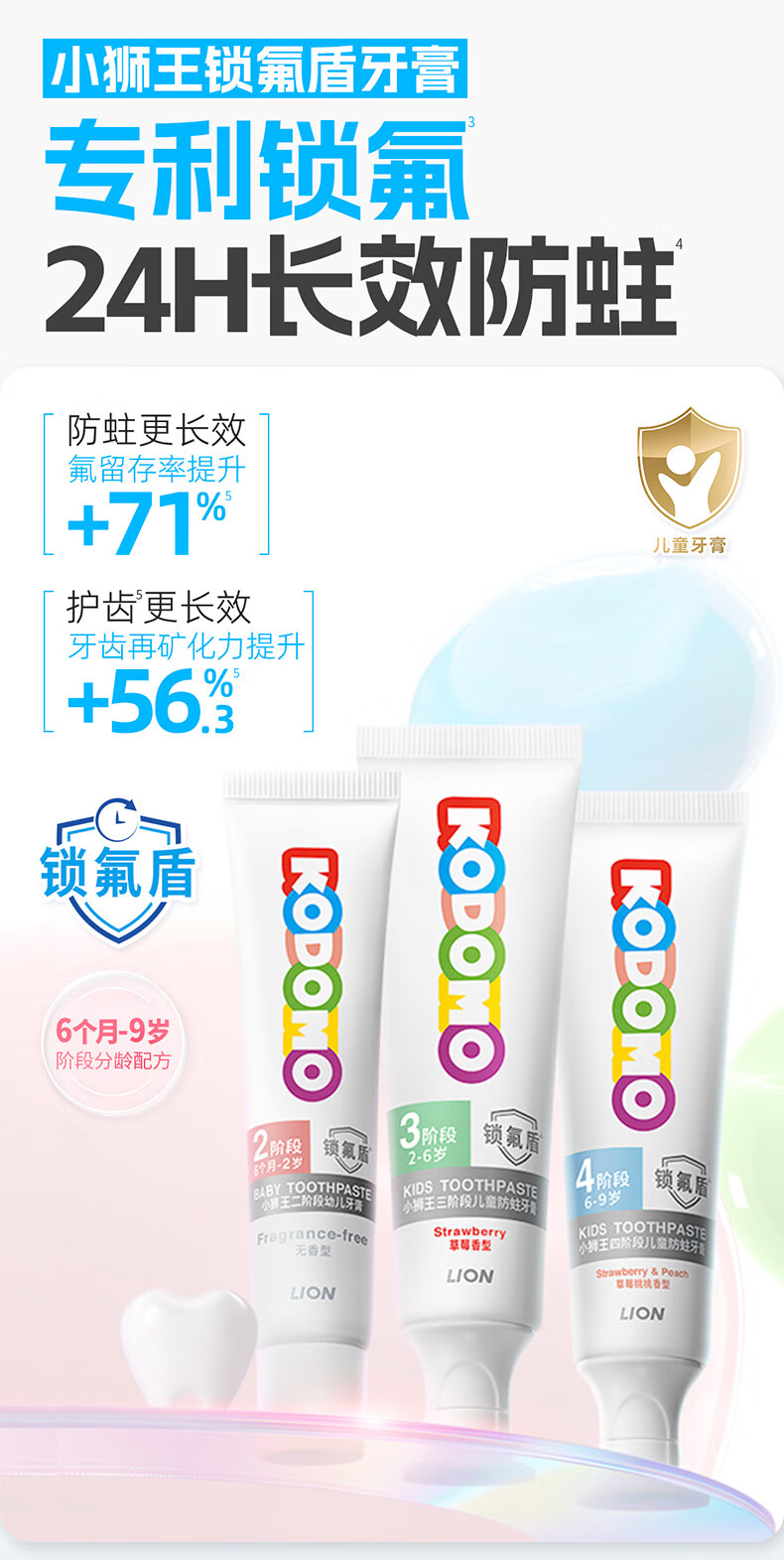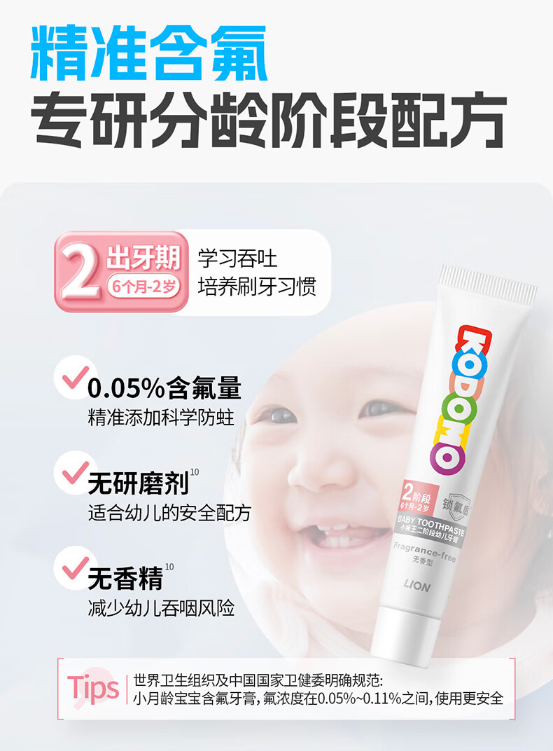 狮王(Lion)小狮王锁氟盾儿童防蛀牙膏2-6岁宝宝含氟防龋护齿牙膏草莓香型60g