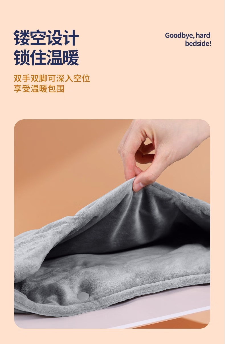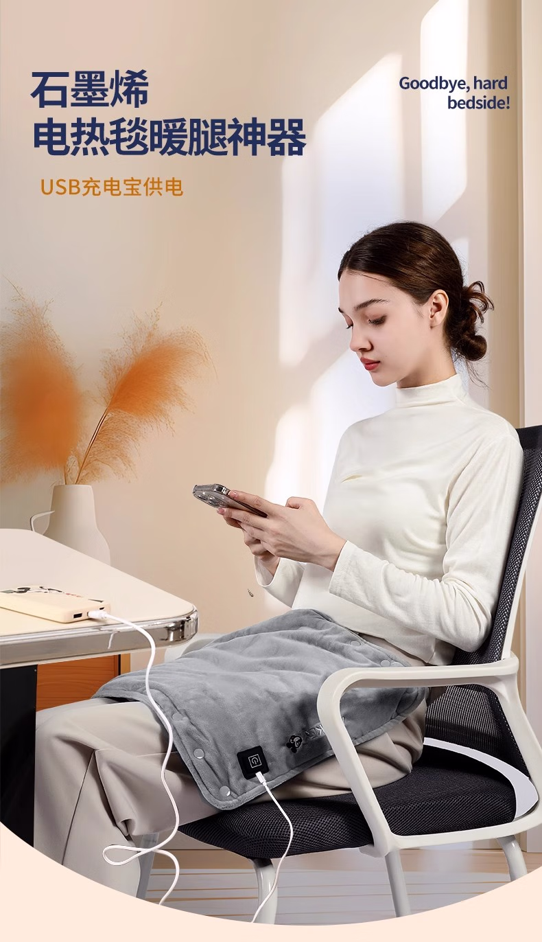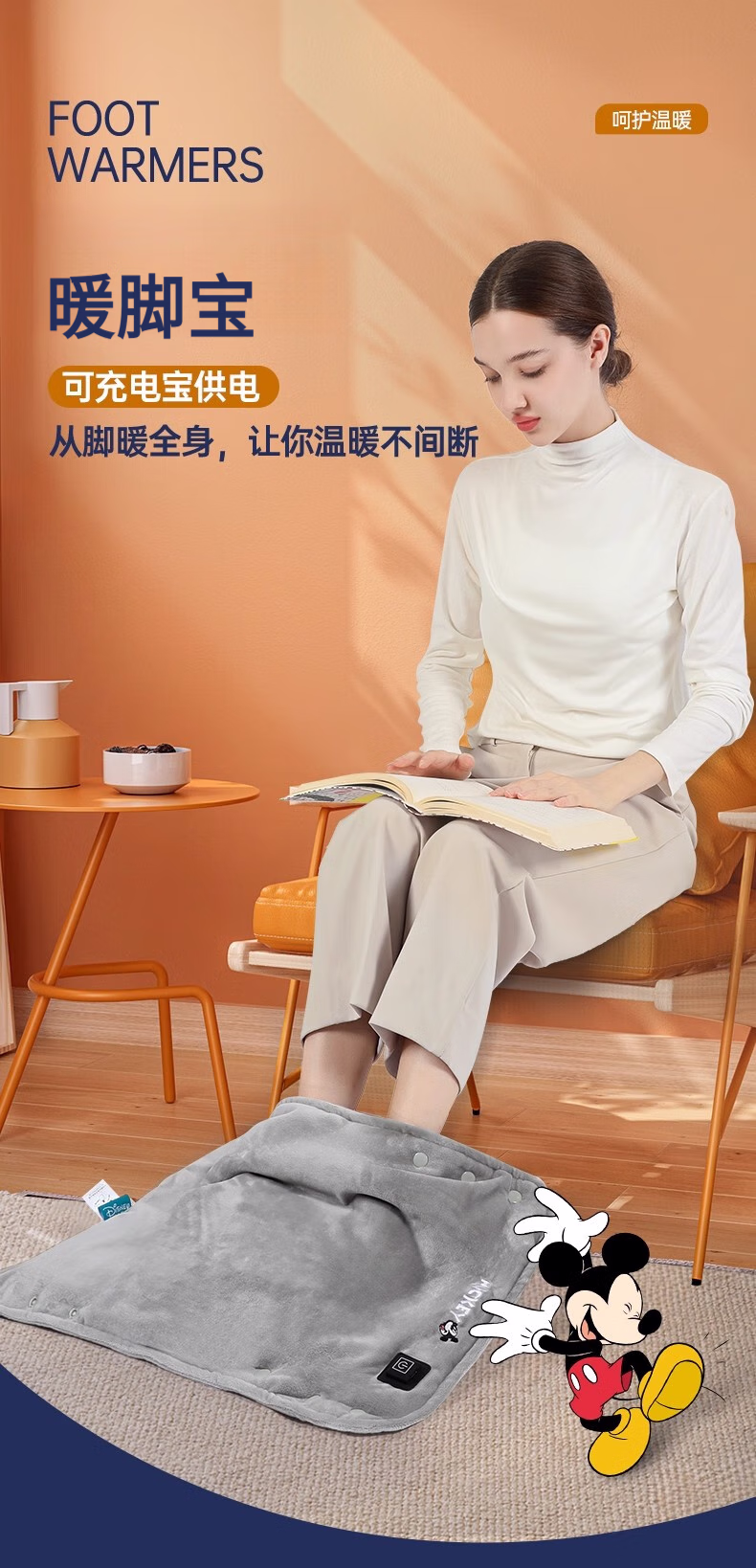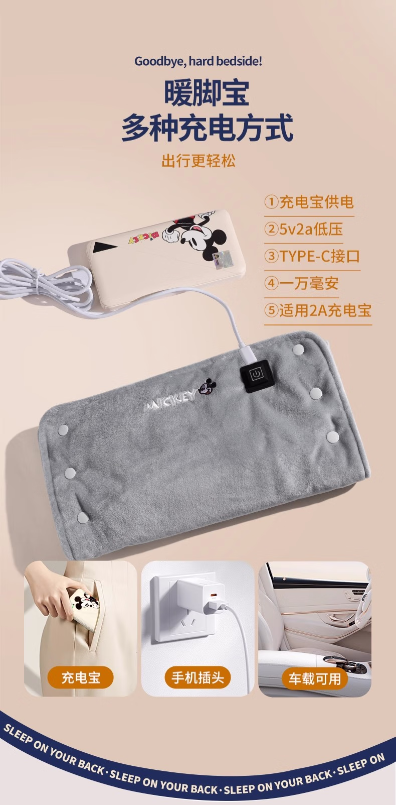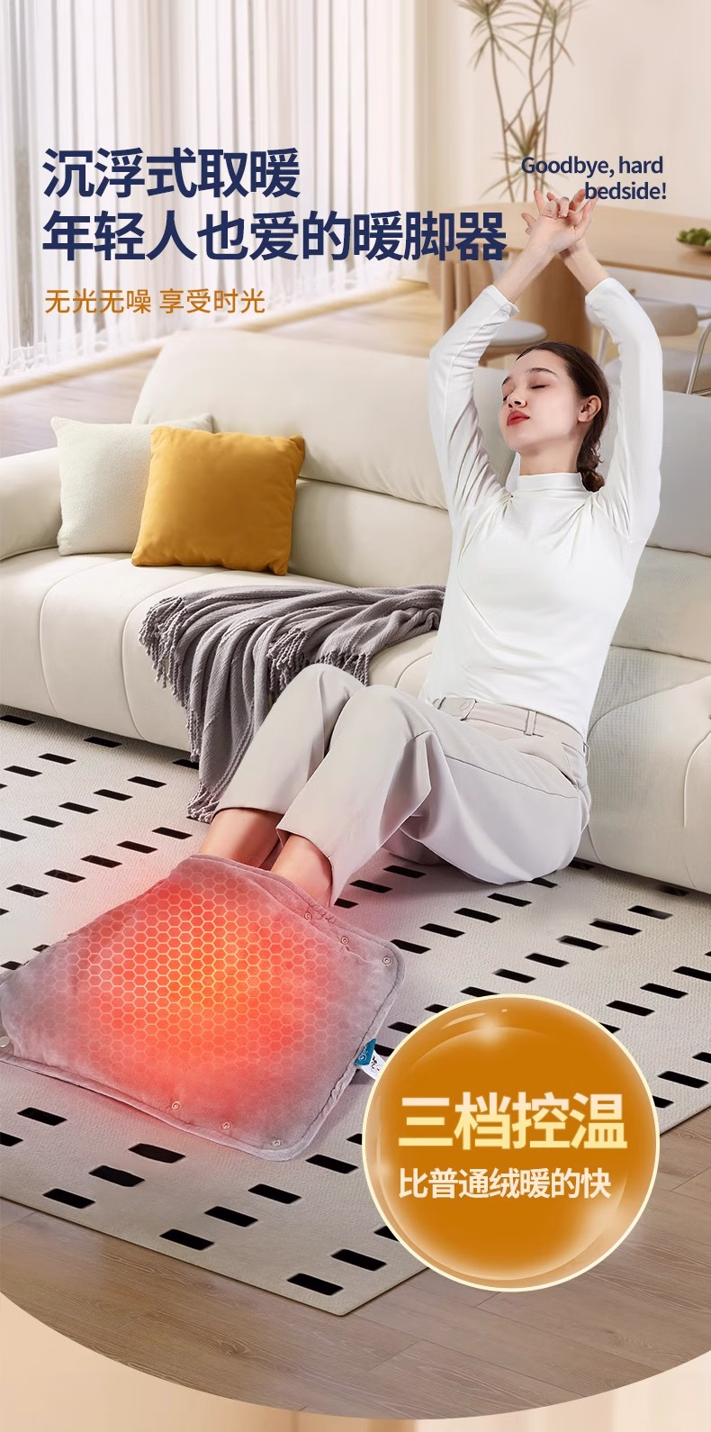 WCZ德国石墨烯暖脚宝电加热床上取暖神器睡觉暖脚袋被窝专用桌下暖脚 【灰色】石墨烯USB暖脚宝-3档调节