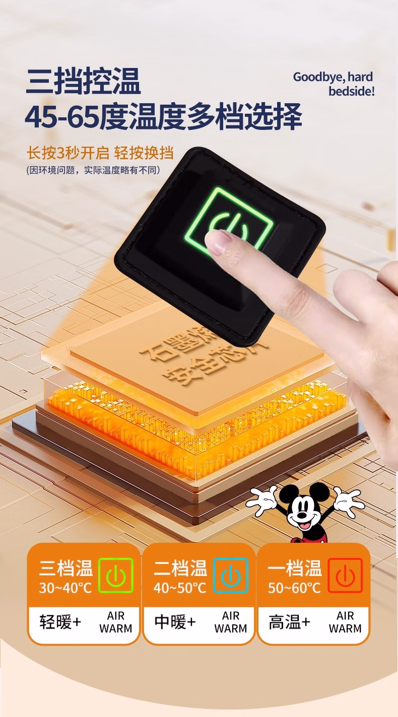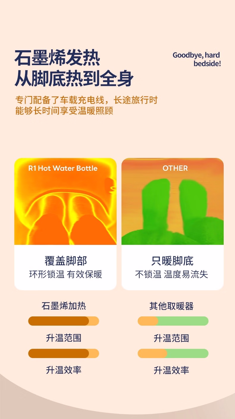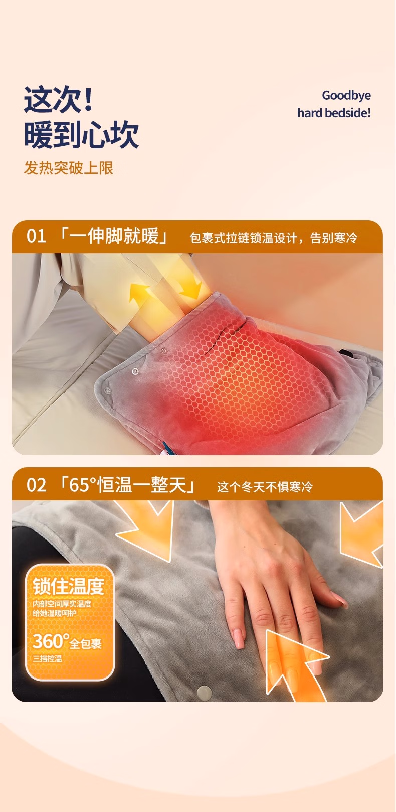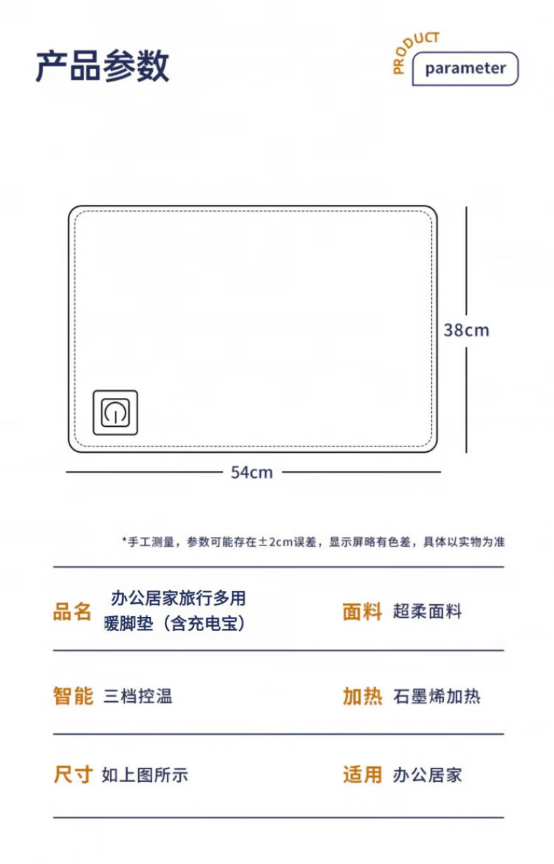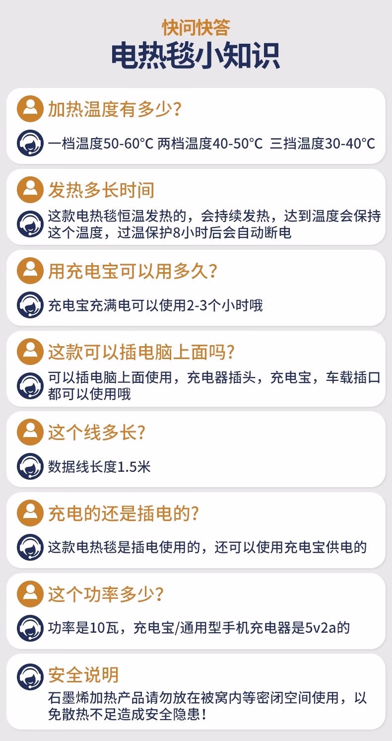 WCZ德国石墨烯暖脚宝电加热床上取暖神器睡觉暖脚袋被窝专用桌下暖脚 【灰色】石墨烯USB暖脚宝-3档调节