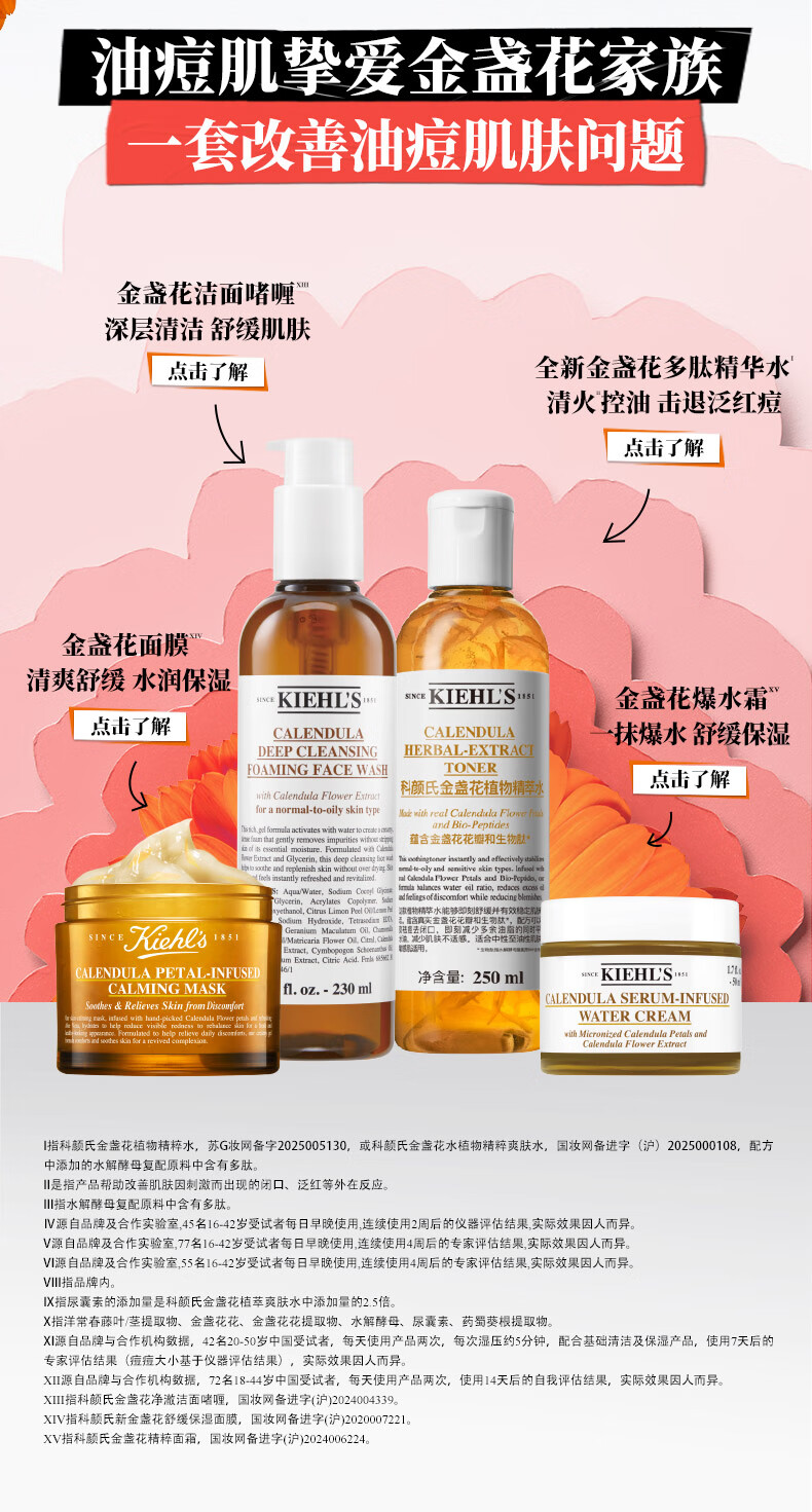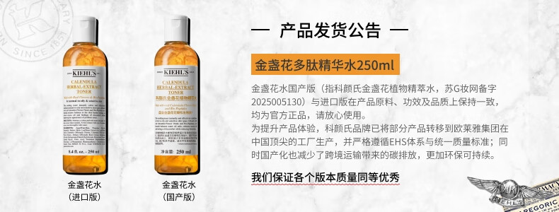 科颜氏(Kiehl's)金盏花植物精粹爽肤水250ml 祛痘控油 生日礼物