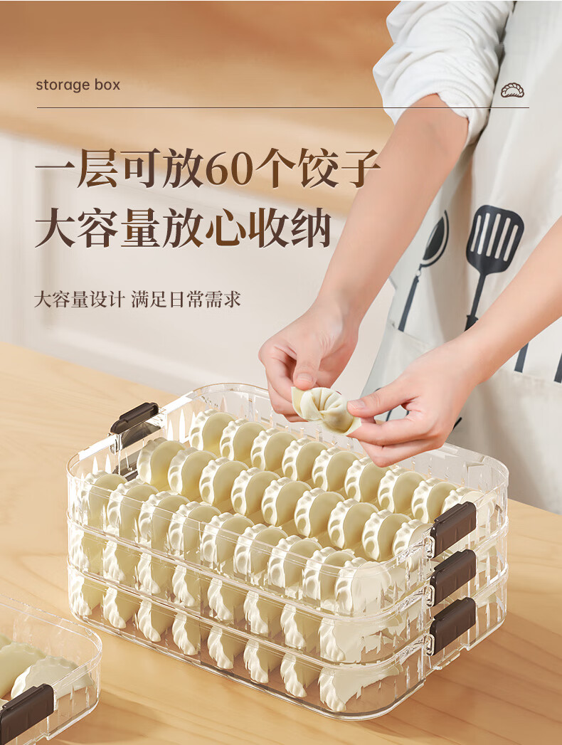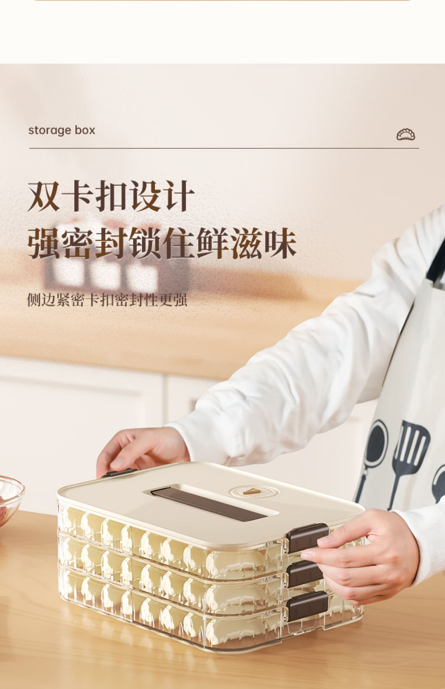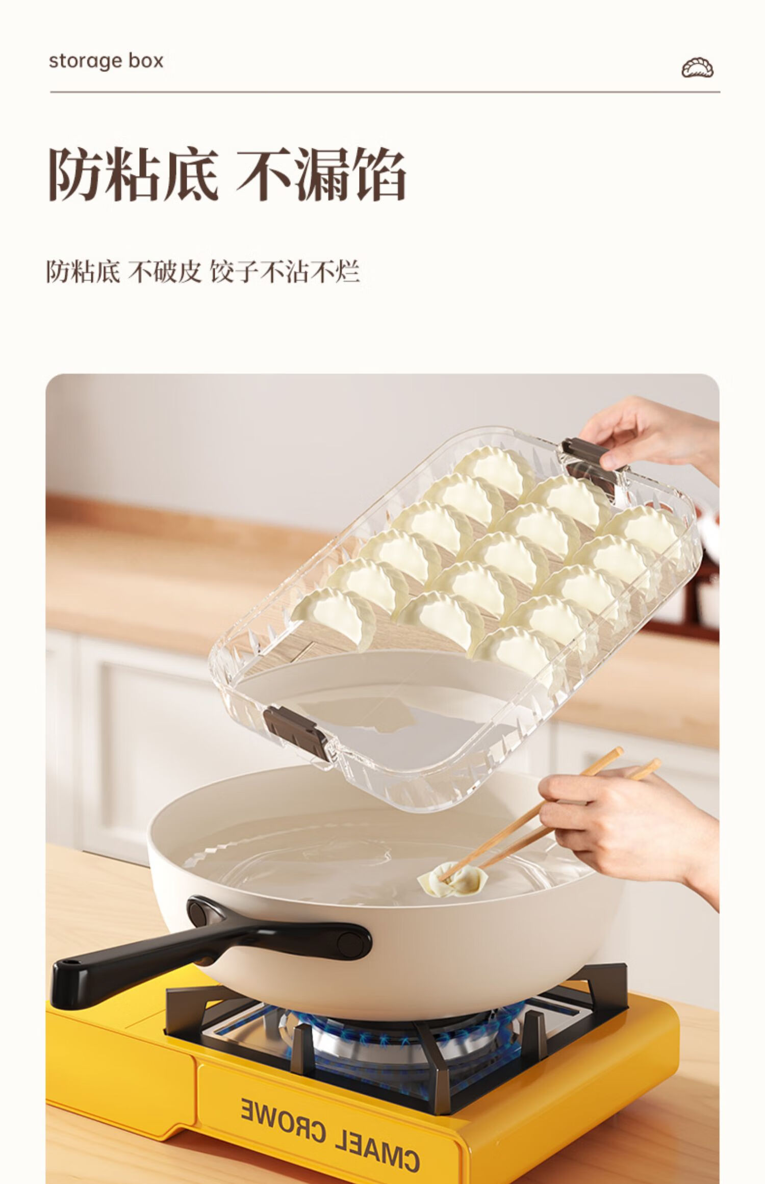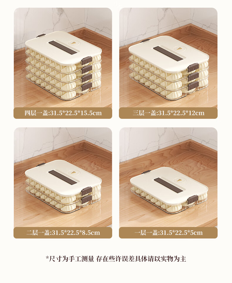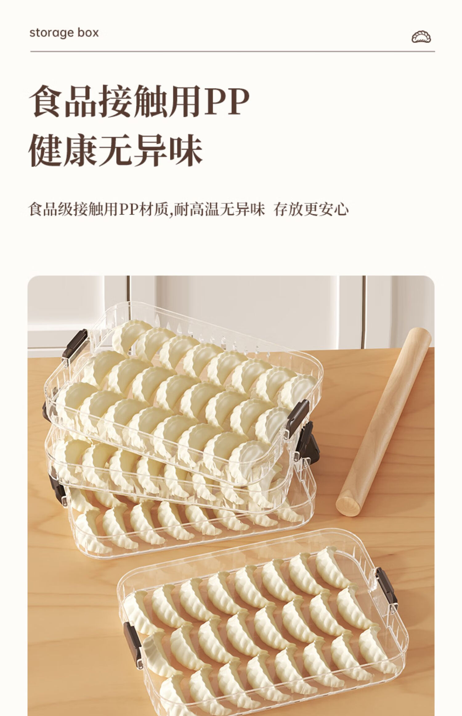 稻草熊家用饺子盒带盖加大收纳盒冰箱保鲜盒加厚食品级冷冻水饺馄饨盒 奶油白【二层一盖】可装120个饺子 不粘底冻裂包赔