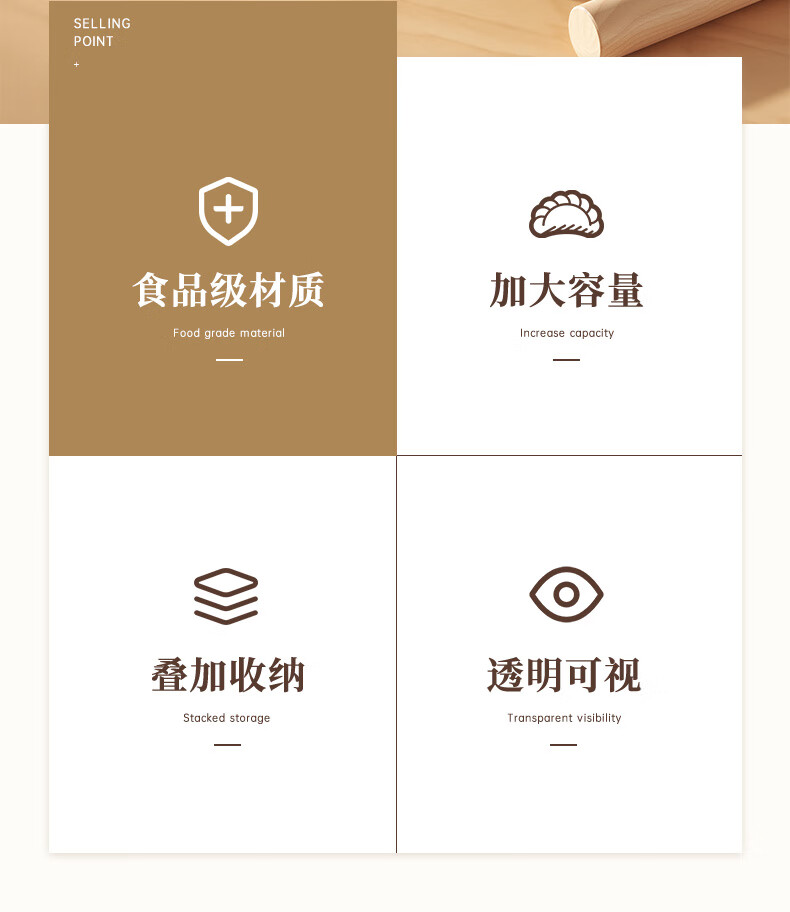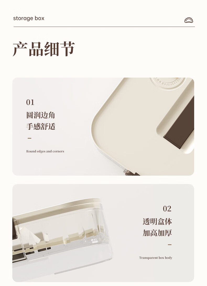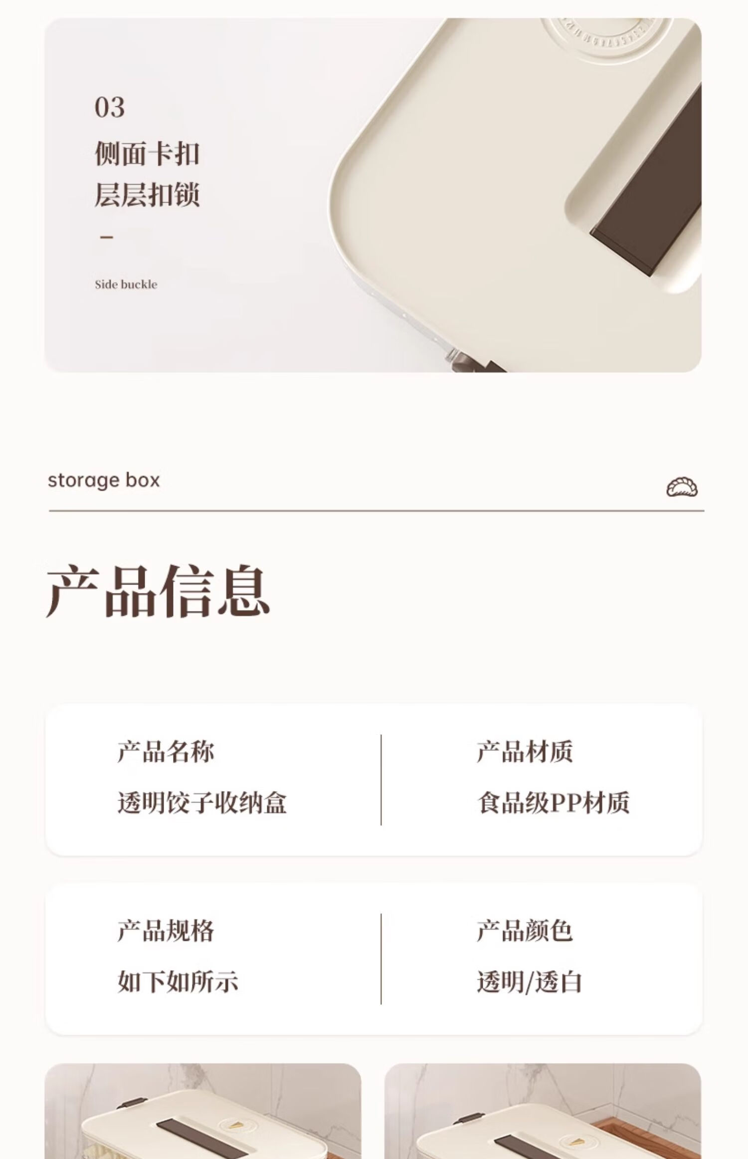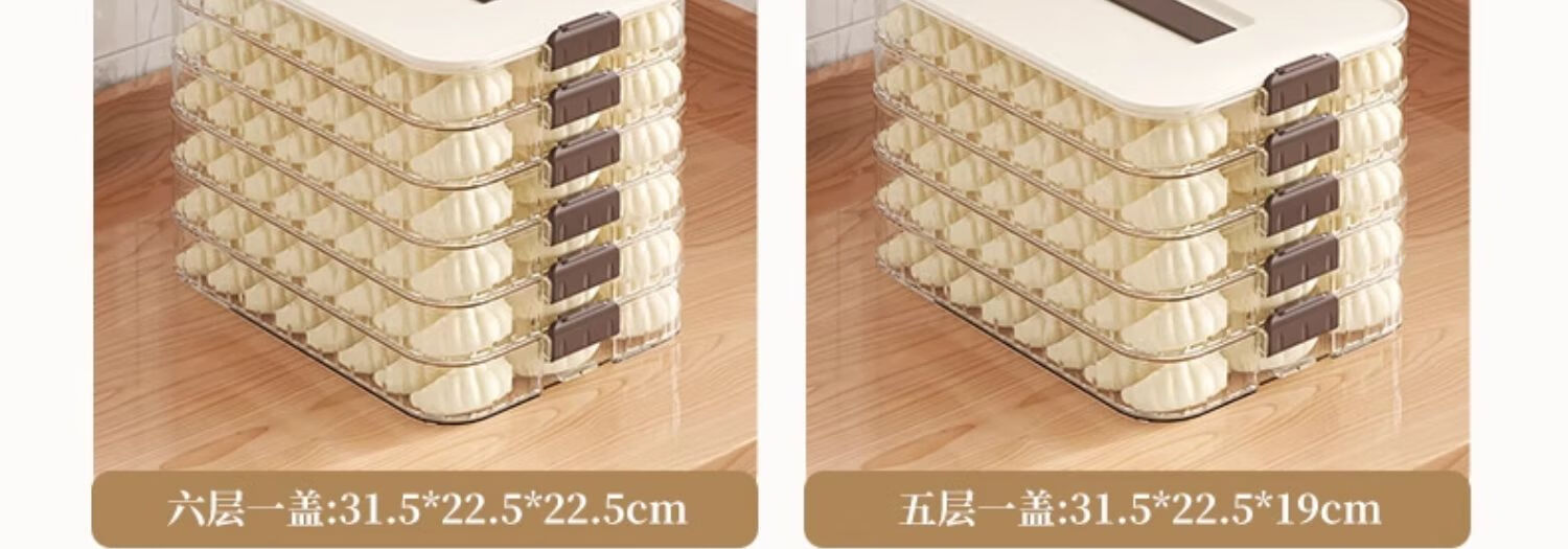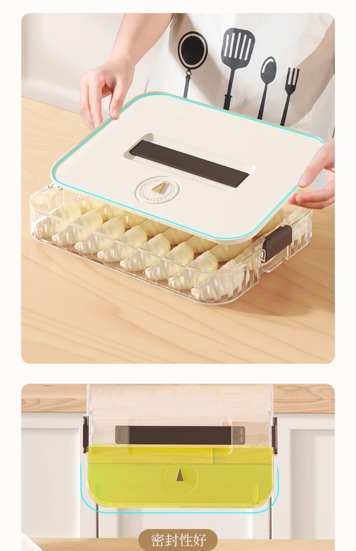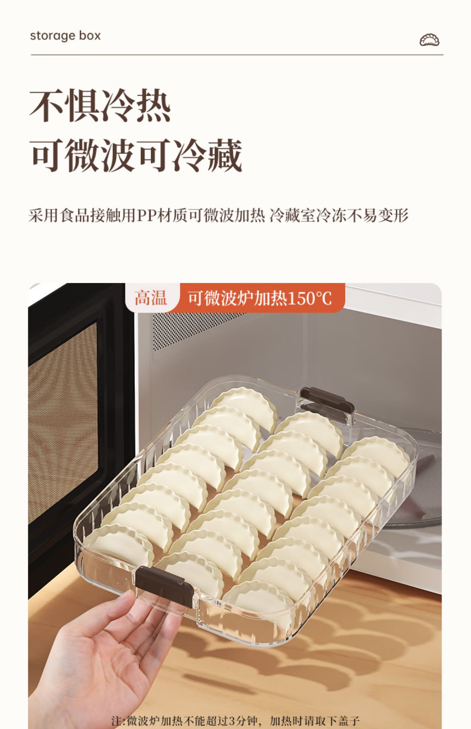稻草熊家用饺子盒带盖加大收纳盒冰箱保鲜盒加厚食品级冷冻水饺馄饨盒 奶油白【二层一盖】可装120个饺子 不粘底冻裂包赔