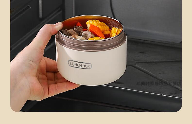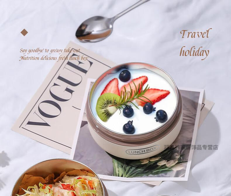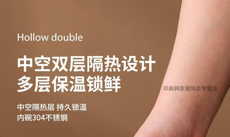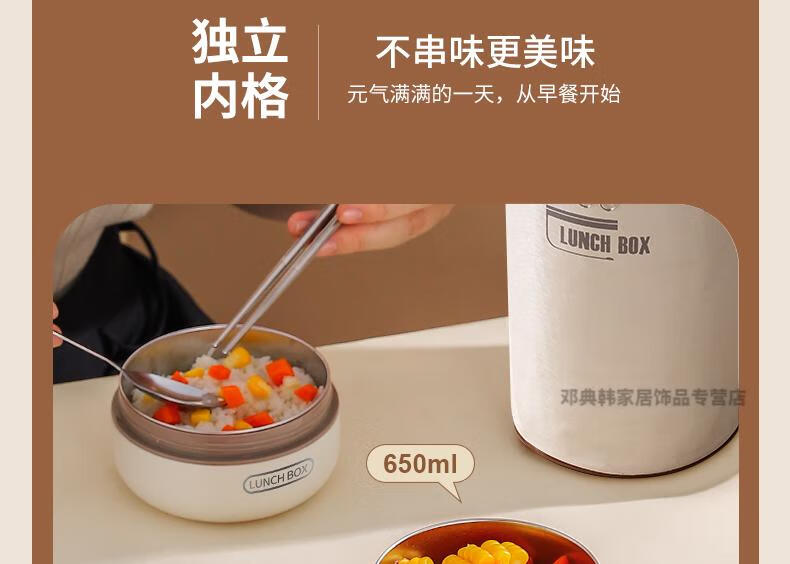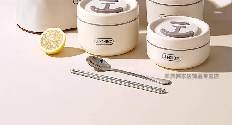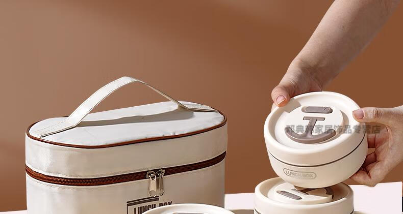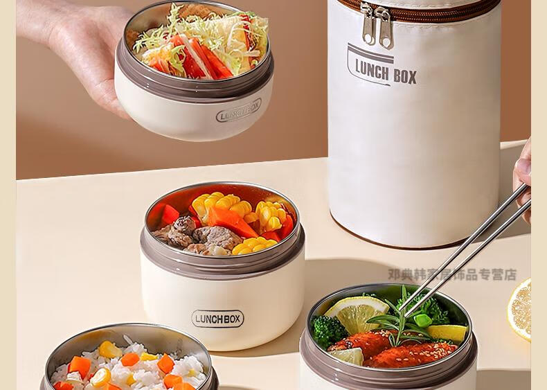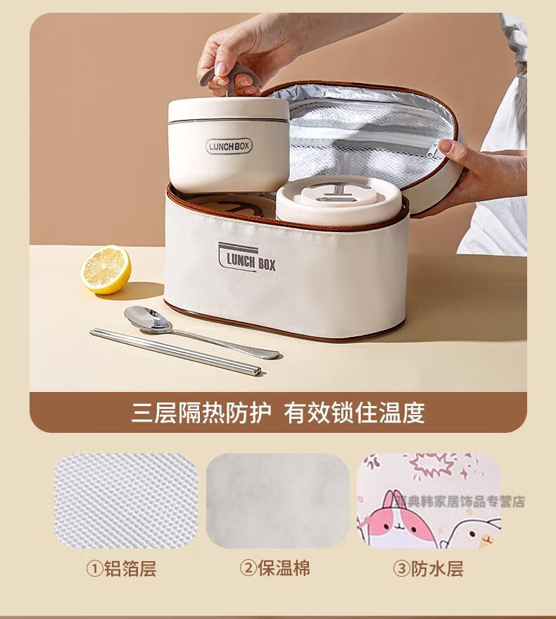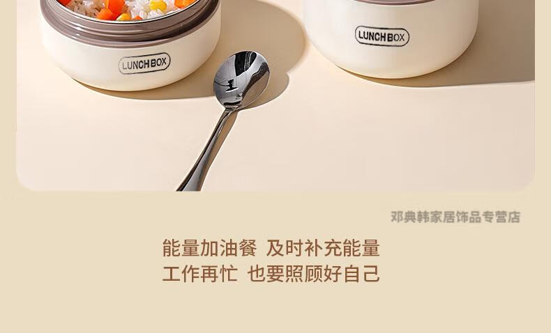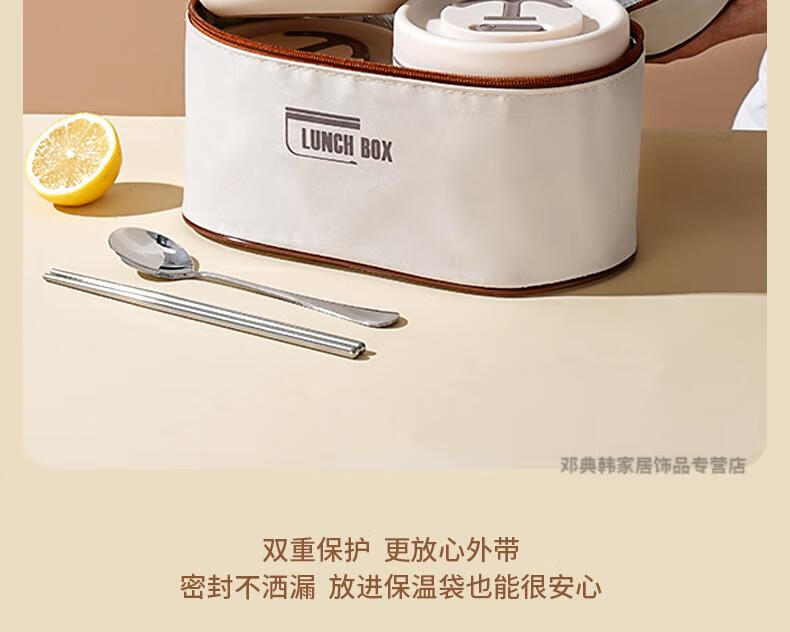 DEATKN德国不锈钢保温饭盒可微波炉加热上班族新款多层便当盒带饭小餐盒 双层白色1100ml【内胆可拆卸】.