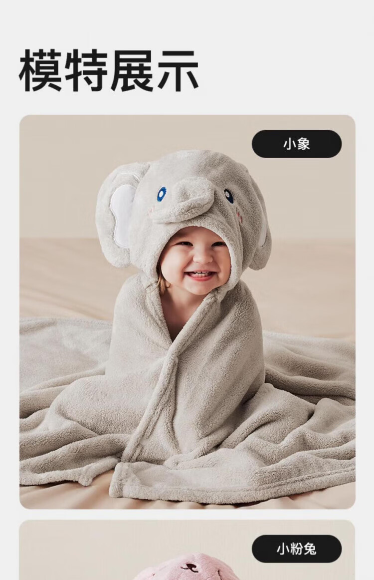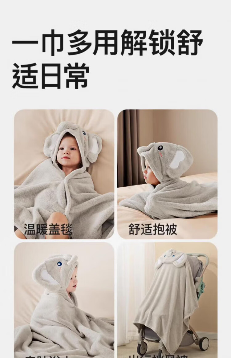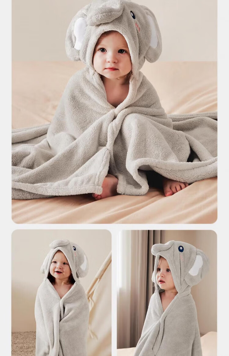WCZ德国婴儿浴巾儿童斗篷浴袍新生可穿式洗澡大象带帽a类超软大 小象【7A级】 80x120cm