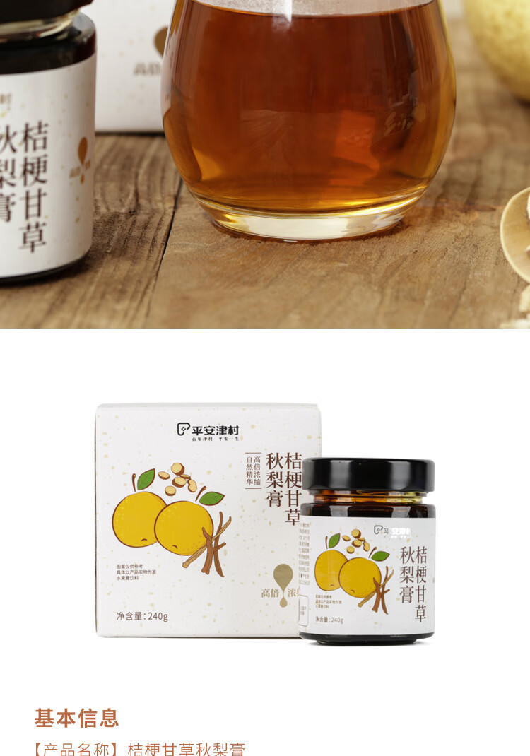 平安津村桔梗甘草秋梨膏水果膏饮料砀山梨清润老少皆宜礼品泡水喝 240g/瓶