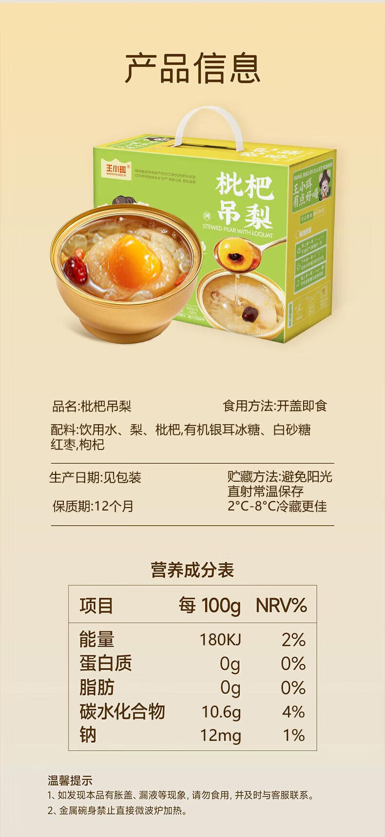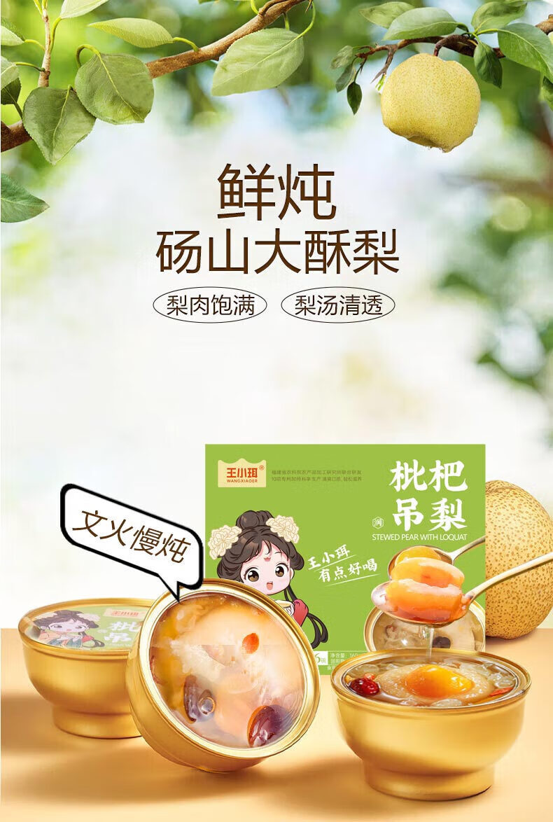 王小珥 枇杷小吊梨汤252g*6碗 银耳羹即食粥冰糖雪梨礼盒