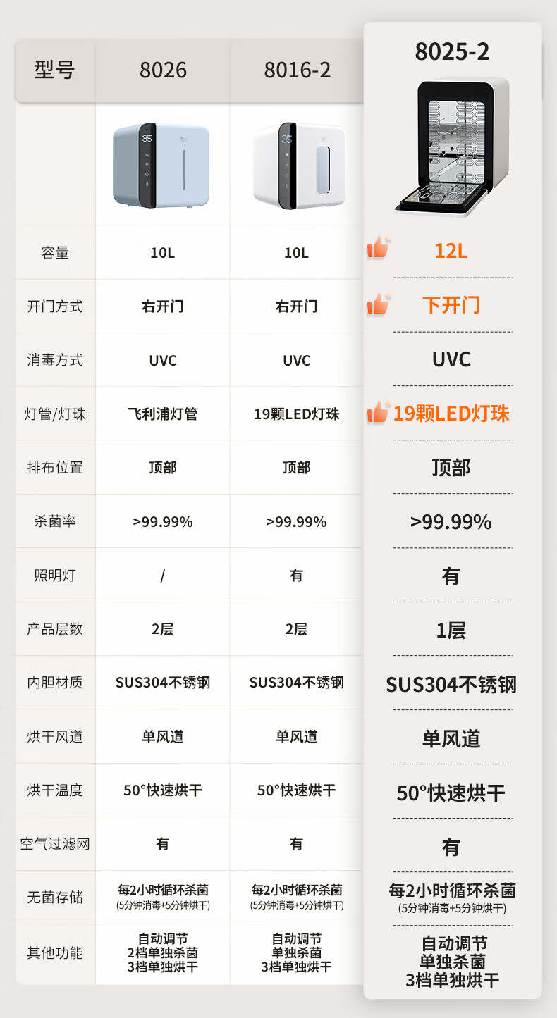 新贝消毒柜婴儿 奶瓶消毒带烘干一体机紫外线19颗灯珠12L8025-2