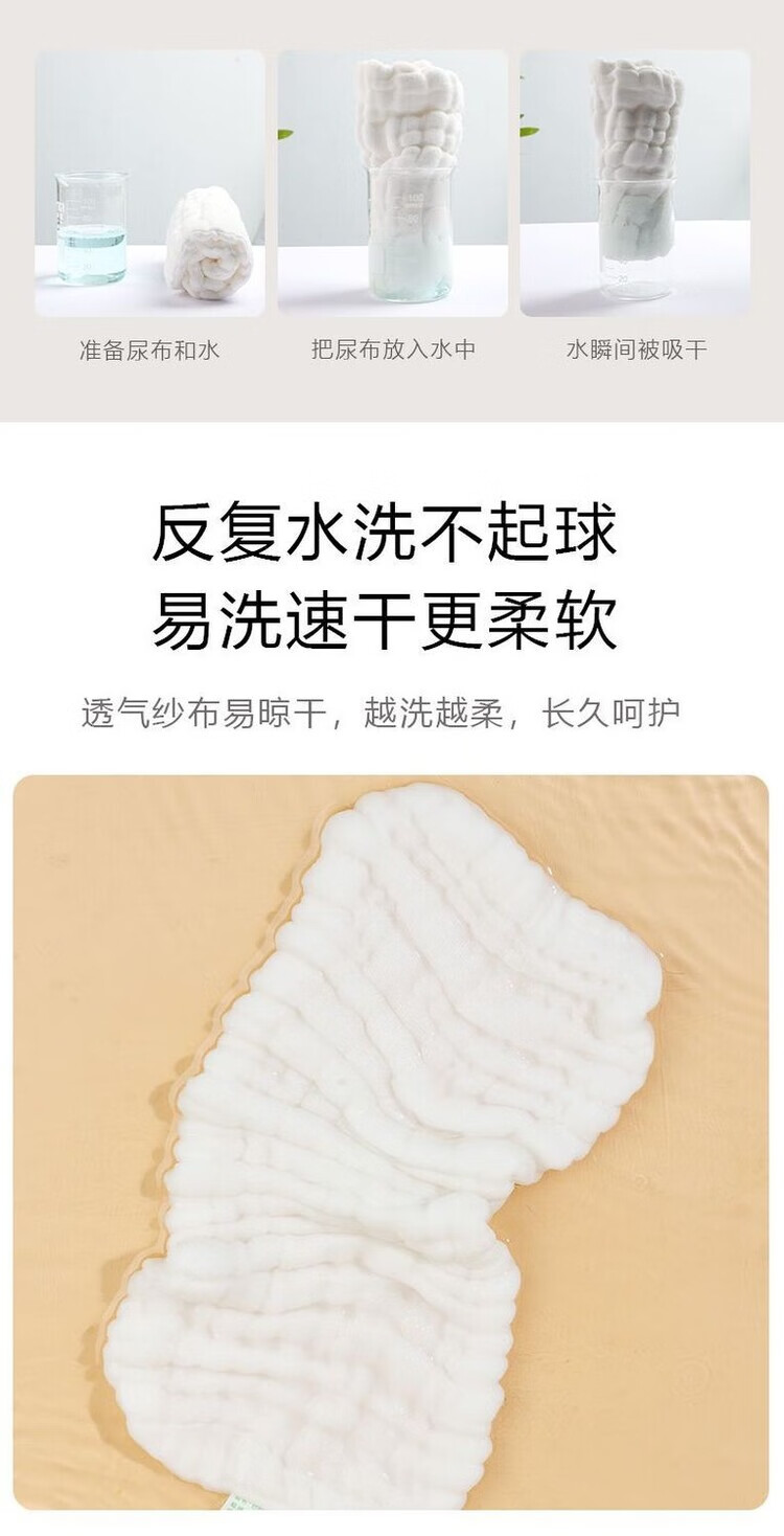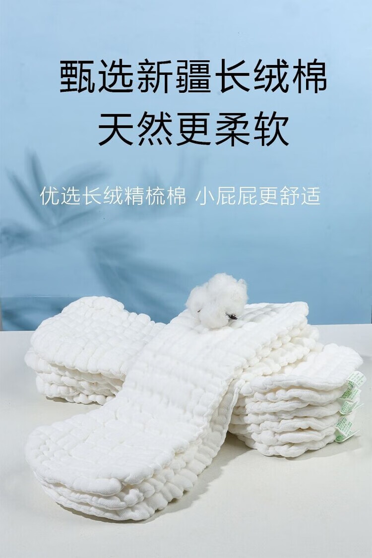 AILUKI20条新生婴儿尿布纯棉可水洗重复使用透气全棉纱布尿布裤兜片介子 M尺码【建议0-6个月】35*15cm 【升级抗菌透气】纯棉尿片5条+赠网裤1条
