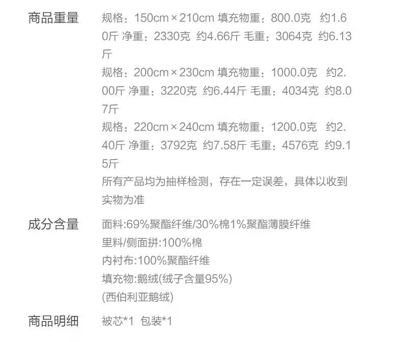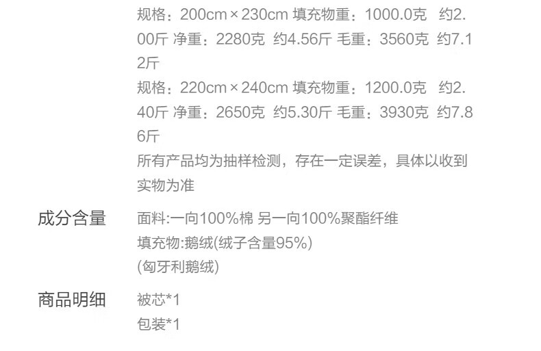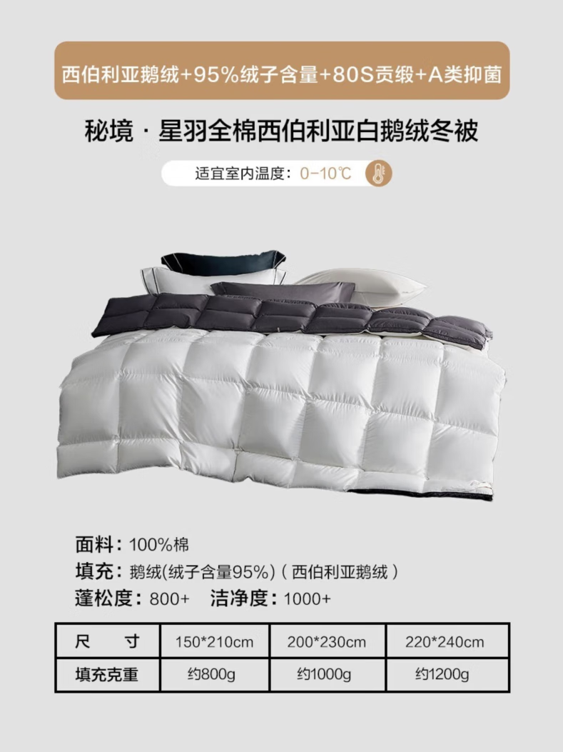 水星家纺被子羽绒被 进口95%白鹅绒被芯 A类秋冬加厚保暖抗菌暖气被子 暖气被(匈牙利鹅绒+120支全棉)绒爵 150cm×210cm
