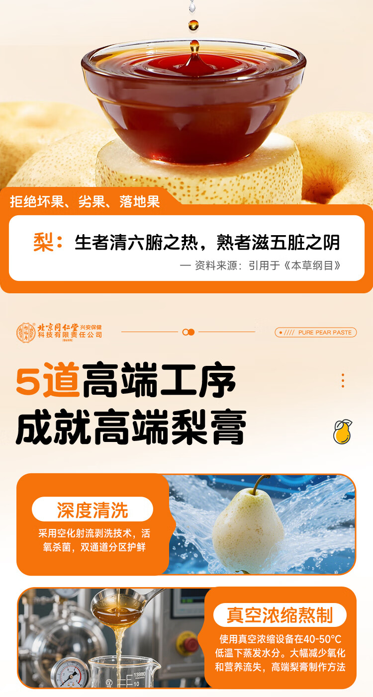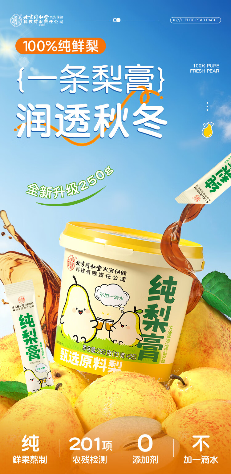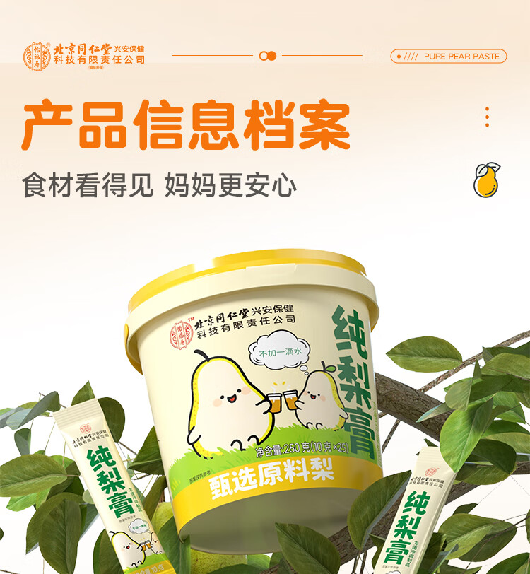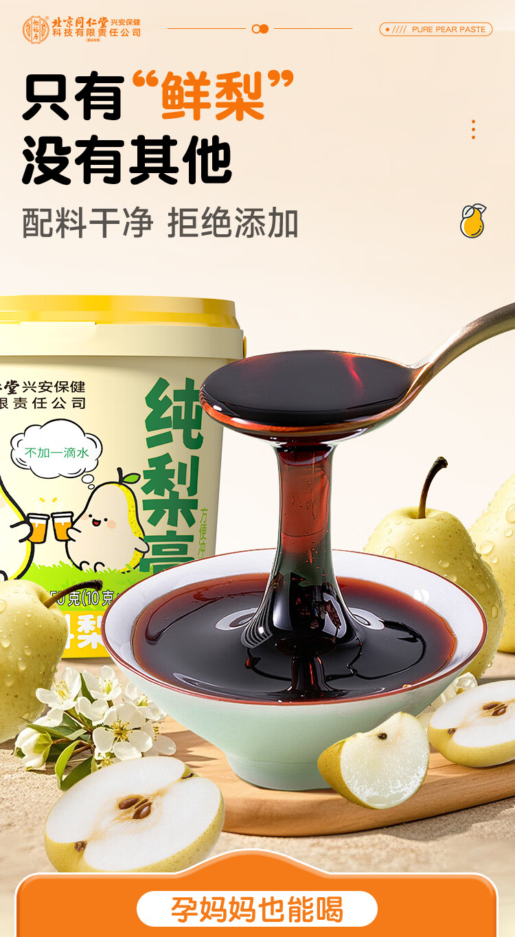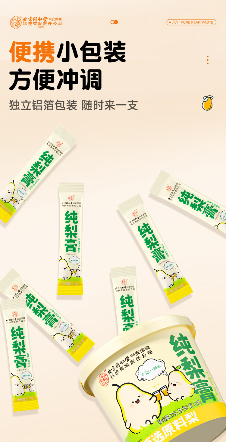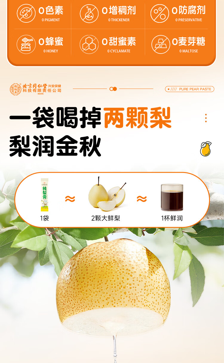 同仁堂秋梨膏儿童0添加100%纯梨膏25条搭枇杷雪梨润肺秋止冬咳化 痰老人