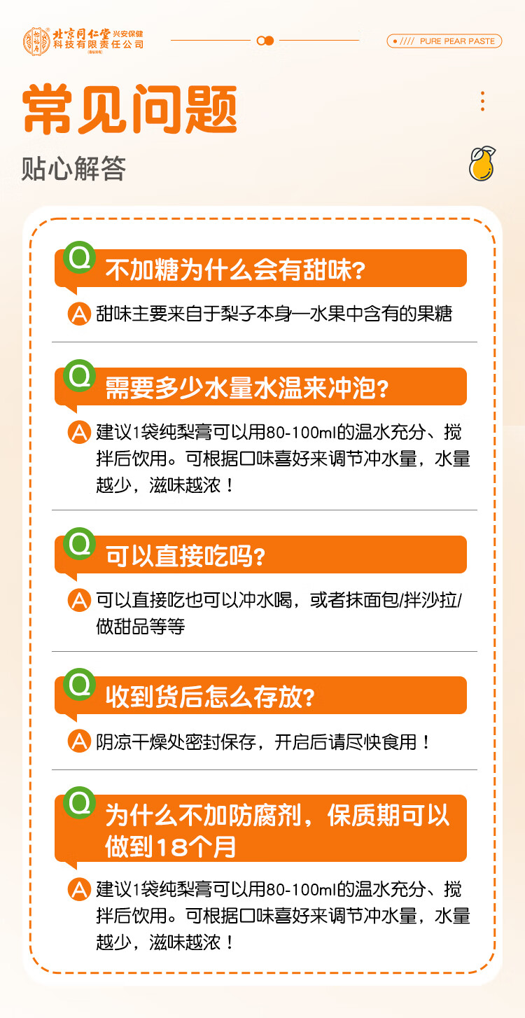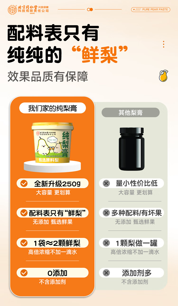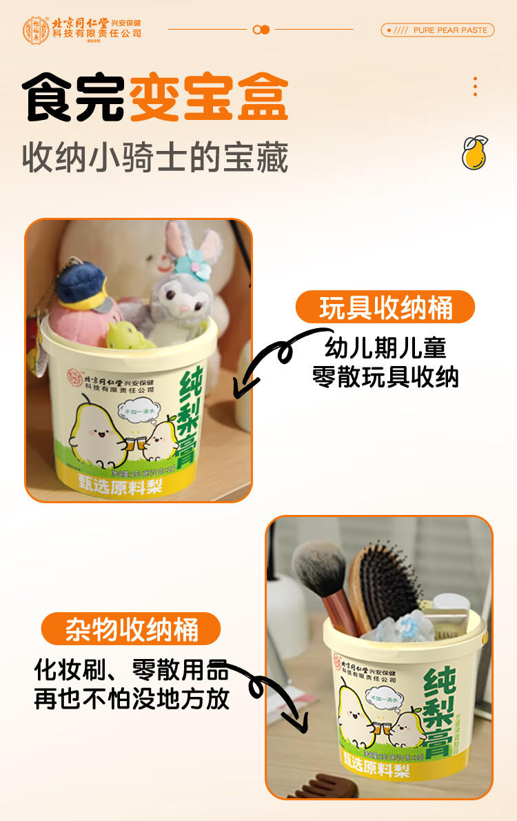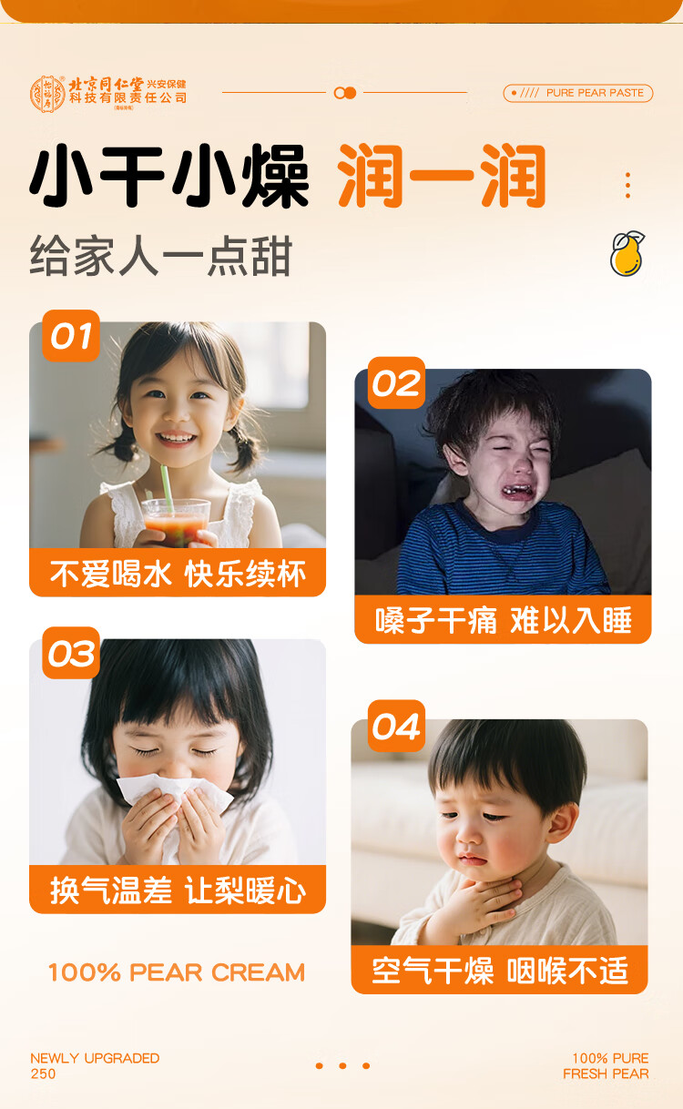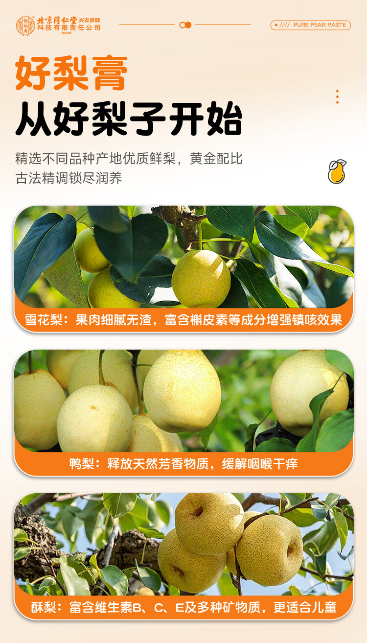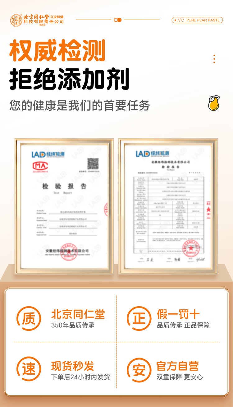 同仁堂秋梨膏儿童0添加100%纯梨膏25条搭枇杷雪梨润肺秋止冬咳化 痰老人
