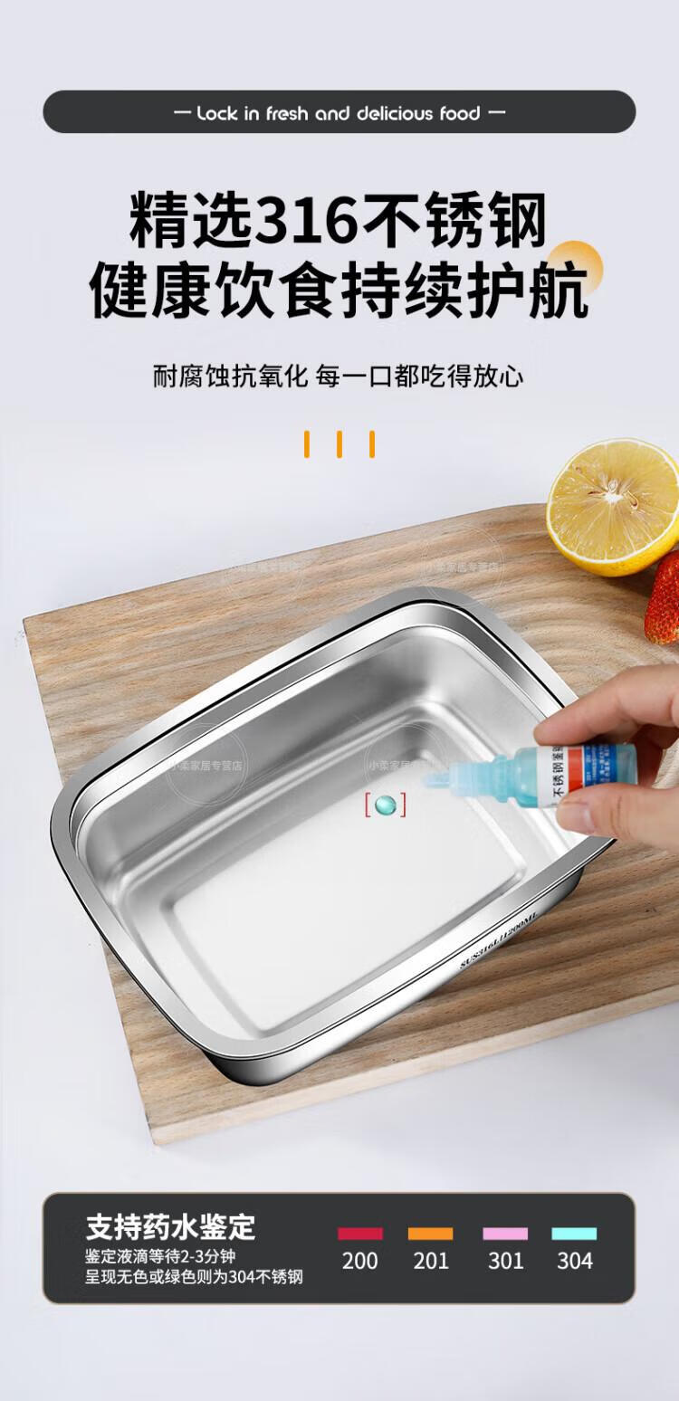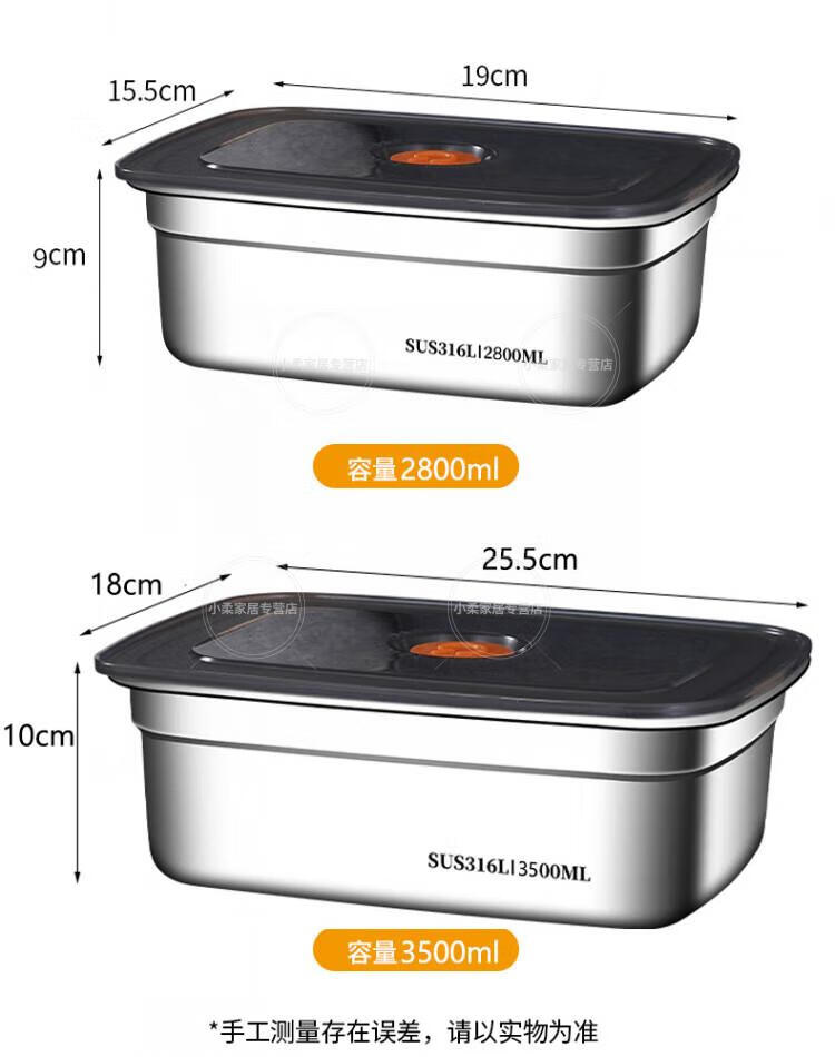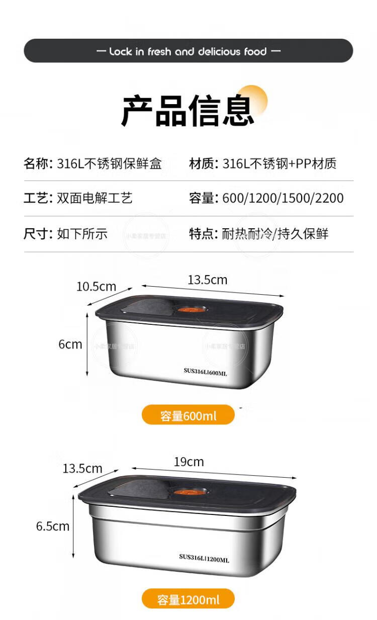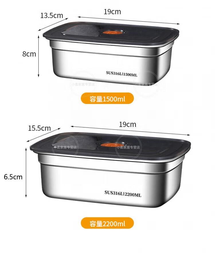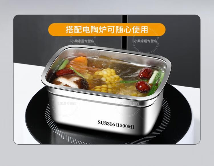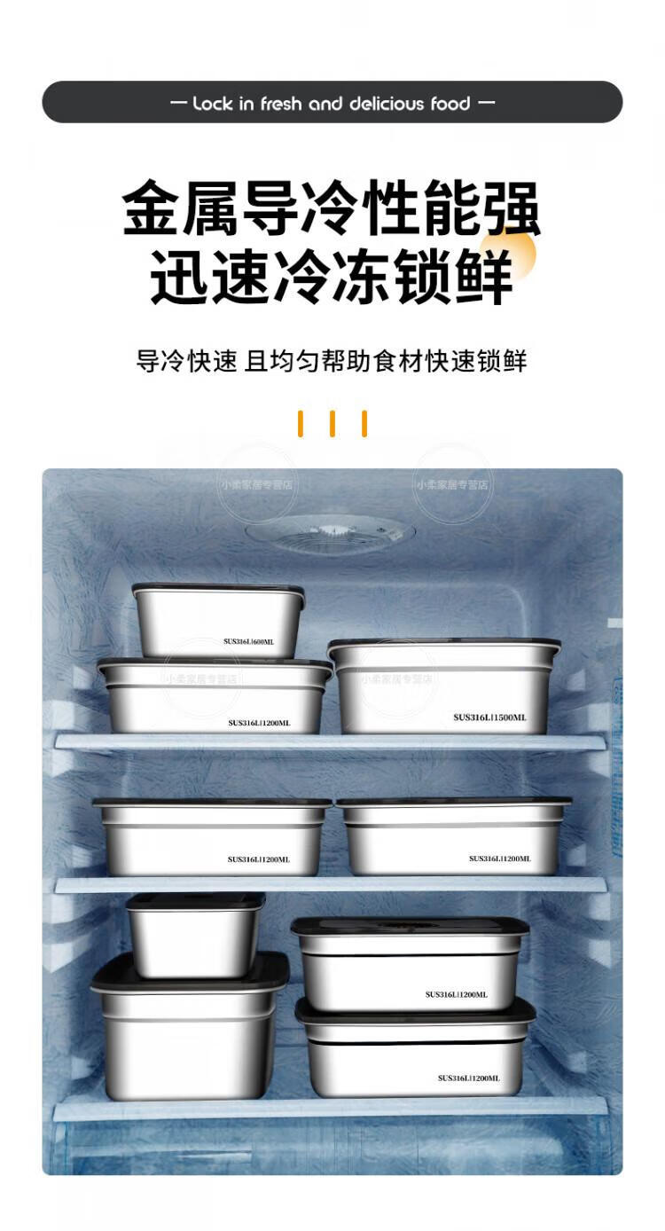 WCZ德国保鲜盒316不锈钢食品级冰箱专用带盖子密封便当盒饭盒收 特厚316钢密封保鲜盒-两个 600ml