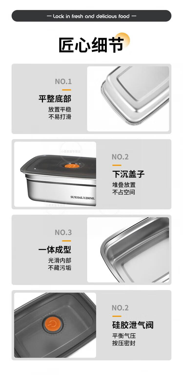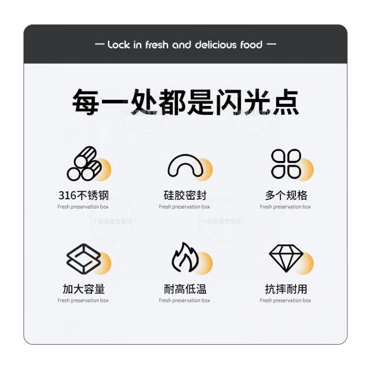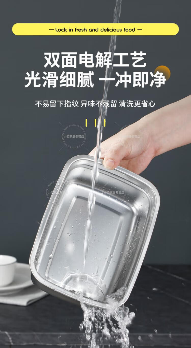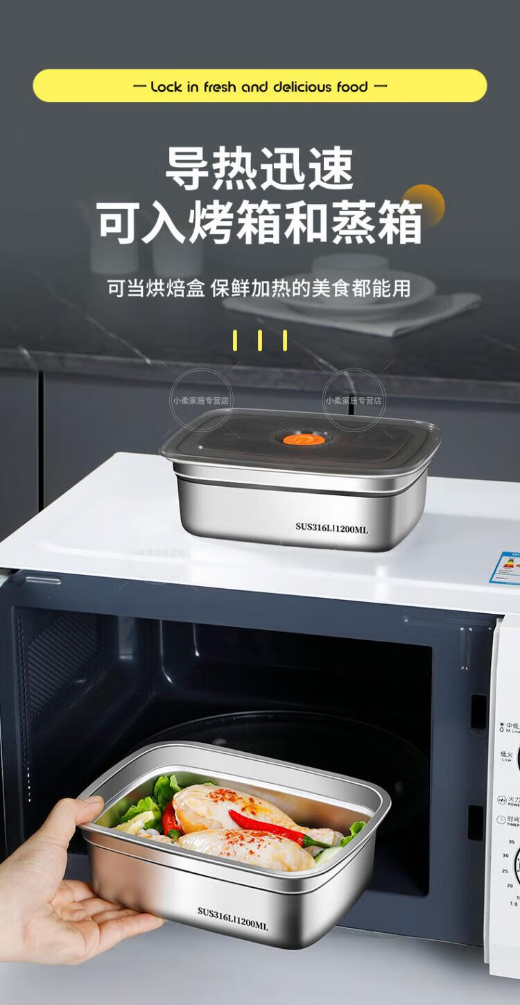 WCZ德国保鲜盒316不锈钢食品级冰箱专用带盖子密封便当盒饭盒收 特厚316钢密封保鲜盒-两个 600ml