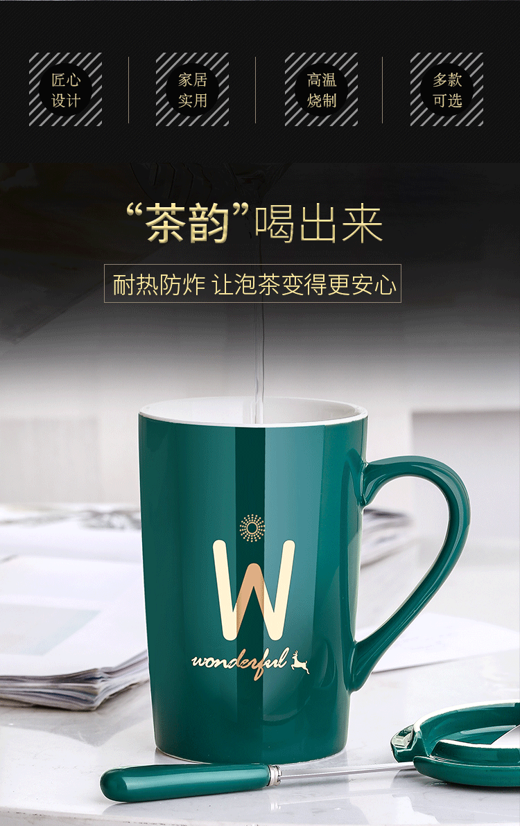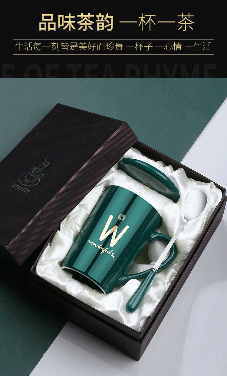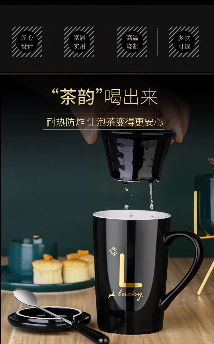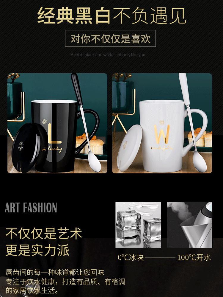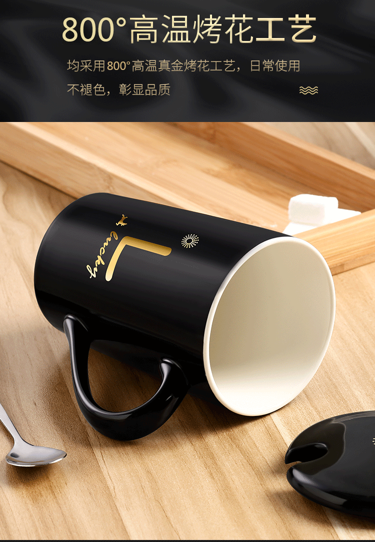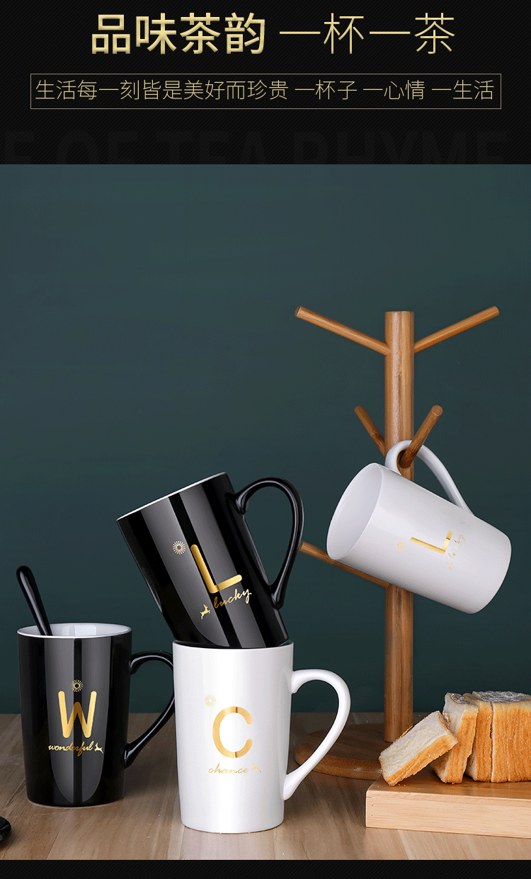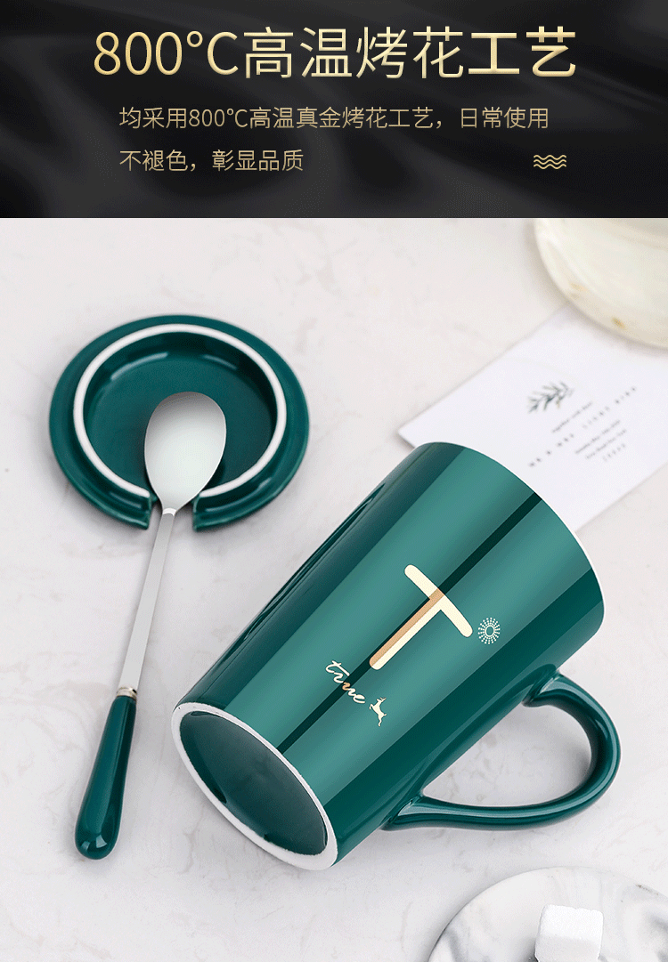 DEATKN茶杯马克杯带盖勺男女陶瓷杯子家用韩版学生情侣牛奶咖啡杯大容量 L姓 经典白(杯+陶瓷盖+陶瓷勺)
