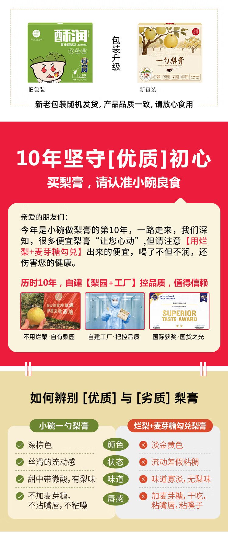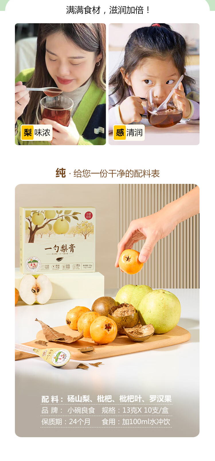 小碗良食秋梨膏原榨酥梨萃枇杷秋梨膏宝宝婴幼儿成人老人勺装礼盒儿童梨膏 梨膏4盒【销售飙升】备注送精美礼品袋