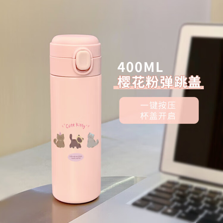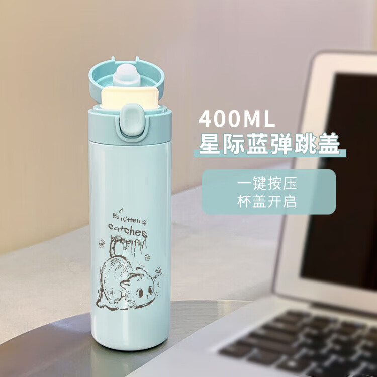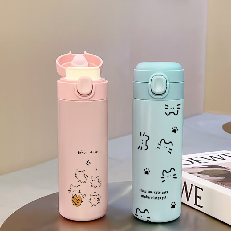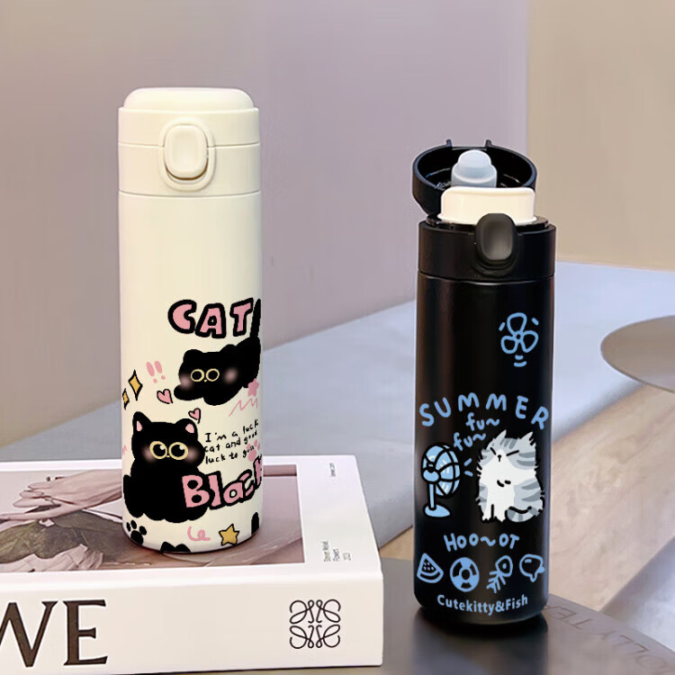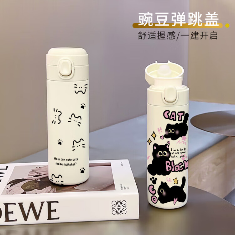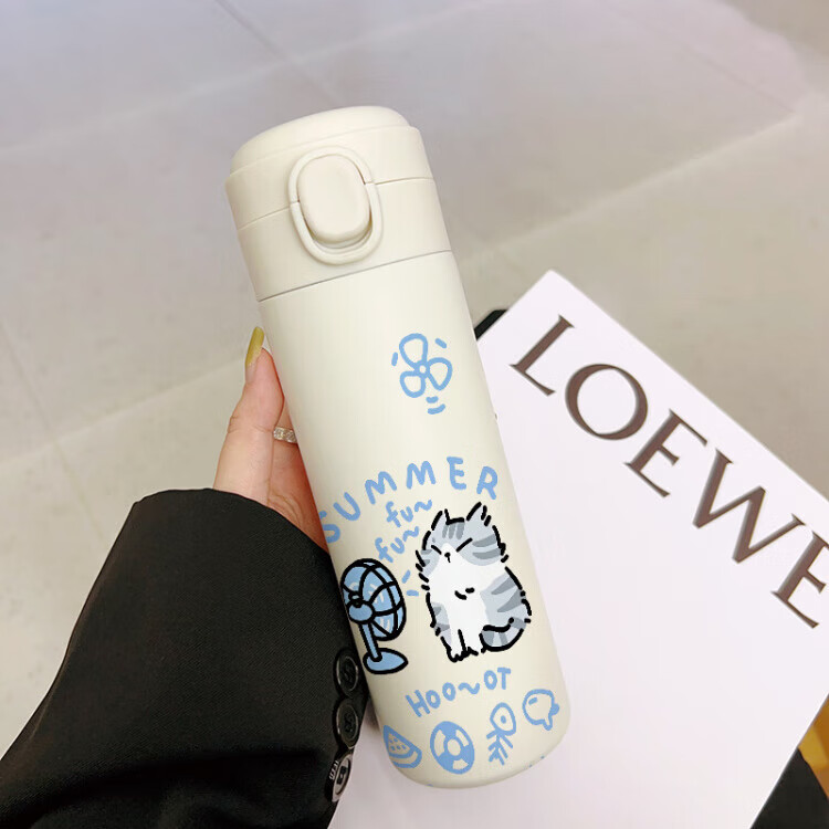 DEATKN德国卡通简约线条猫保温杯316不锈钢大容量高颜值水杯子学生 奶白色-BXAD6829吹风扇猫咪