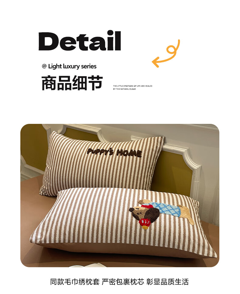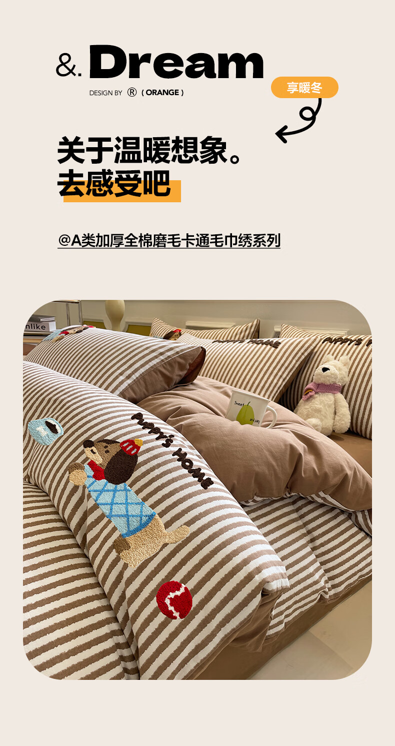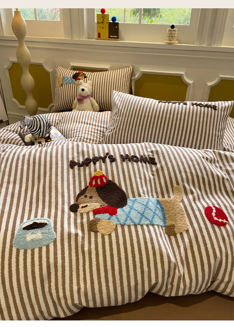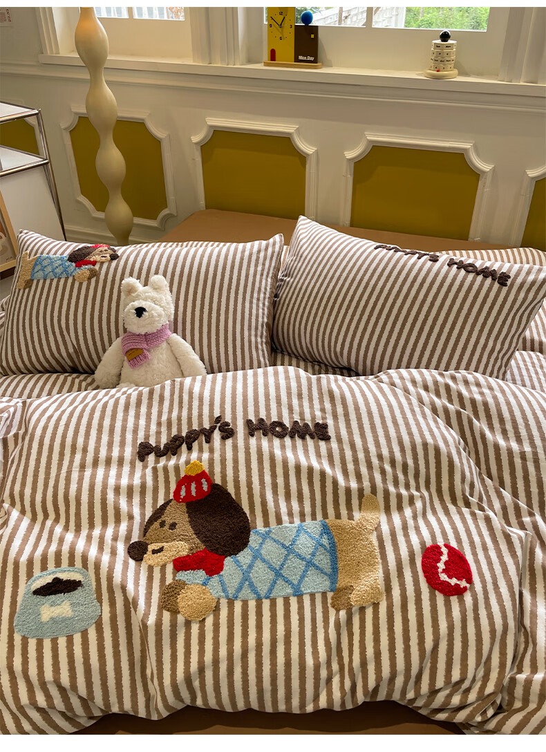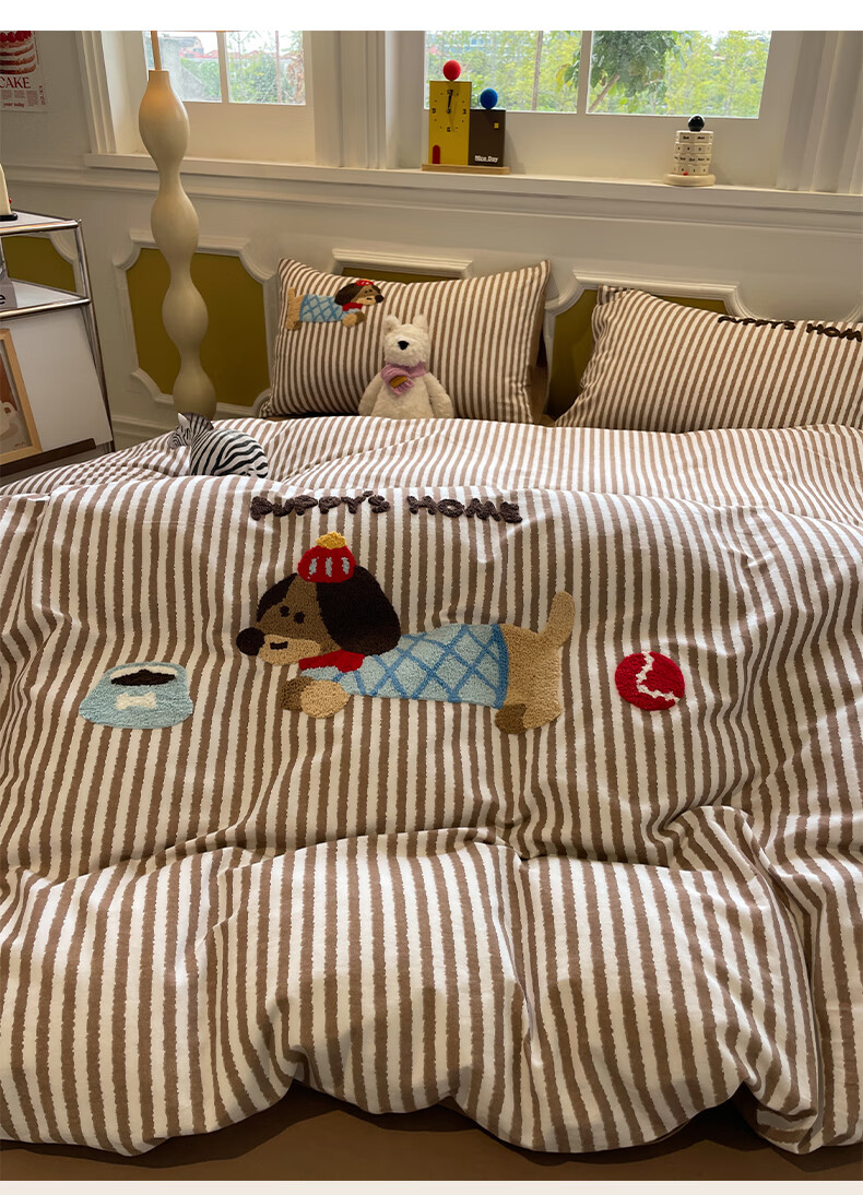 猫人A类全棉毛巾绣床上四件套纯棉磨毛床单被套床笠学生宿舍三件套 竖条腊肠狗【100%全棉面料】 1.8m 床笠款 四件套-200x230cm被套