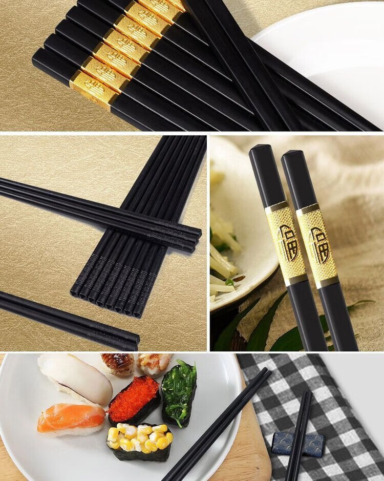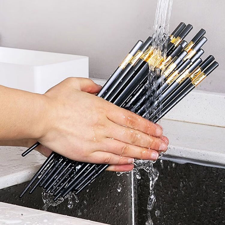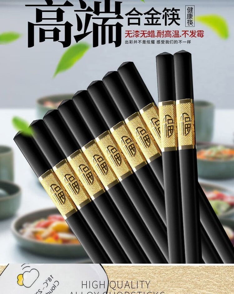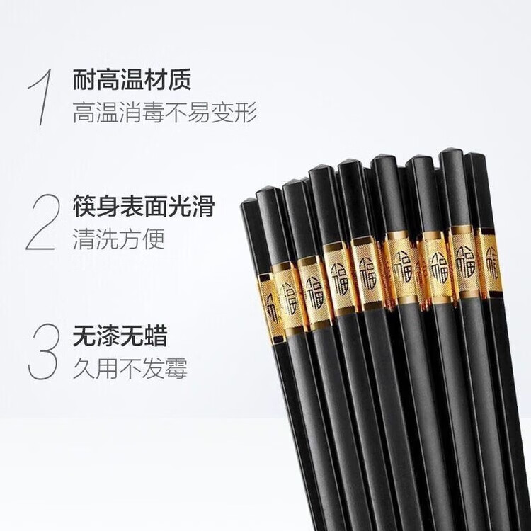 DEATKN耐高温酒店发霉抗菌合金筷子家用高档防霉变形家庭防滑无漆餐厅 家用抗菌金福24CM(光泽好经久耐用耐高温) (家用装)10双