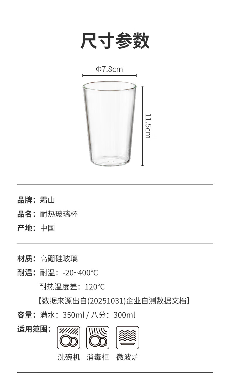 霜山耐热玻璃杯咖啡果汁冷饮杯薄壁直身杯冰饮啤酒杯简约透明水杯 【350ml】1个入