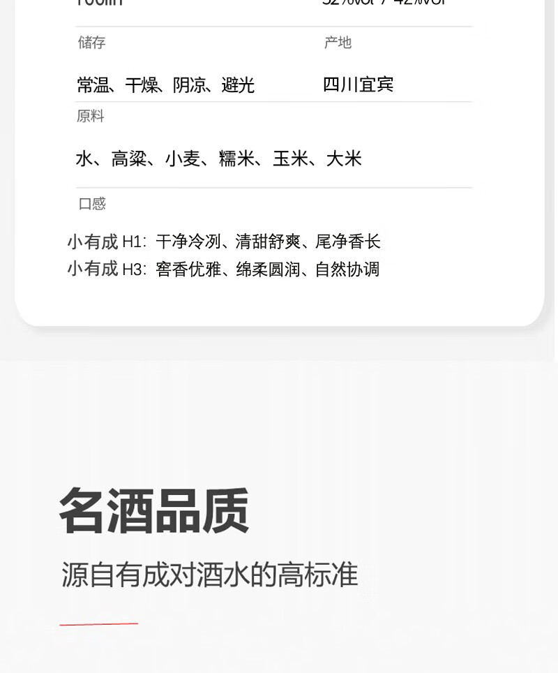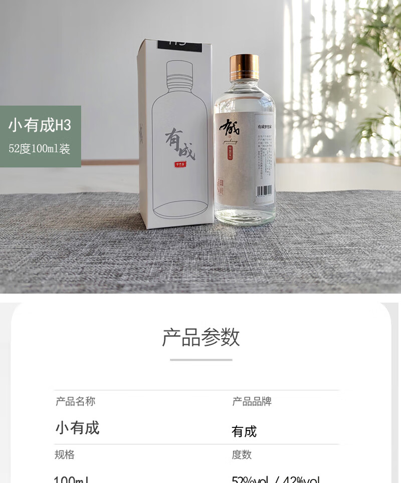 有成纯粮固态发酵酒 优级浓香型白酒 商务接待 随手礼 52度 100mL 1瓶 小有成H3