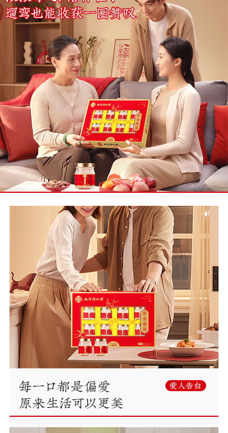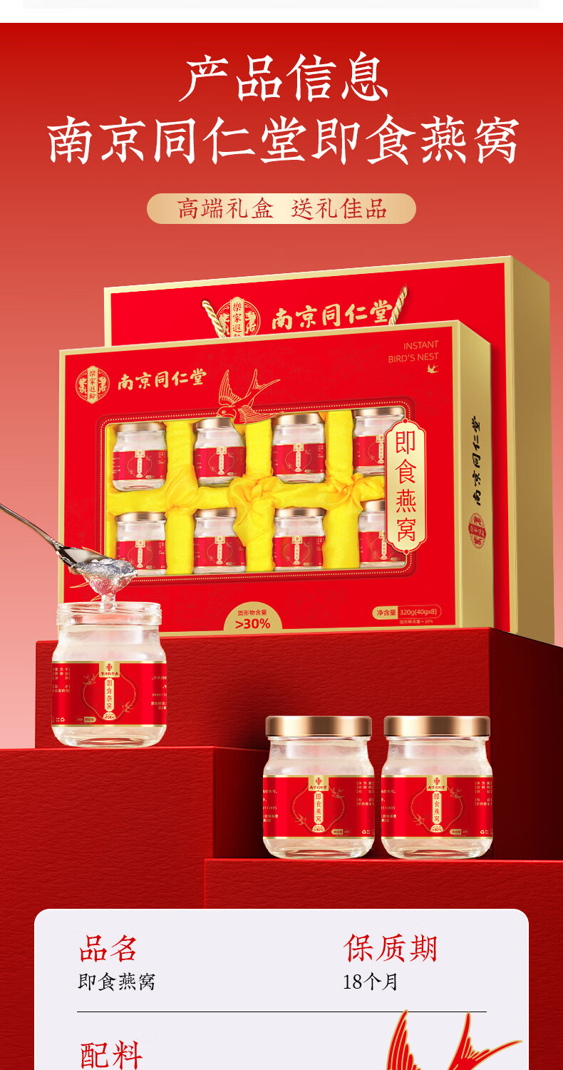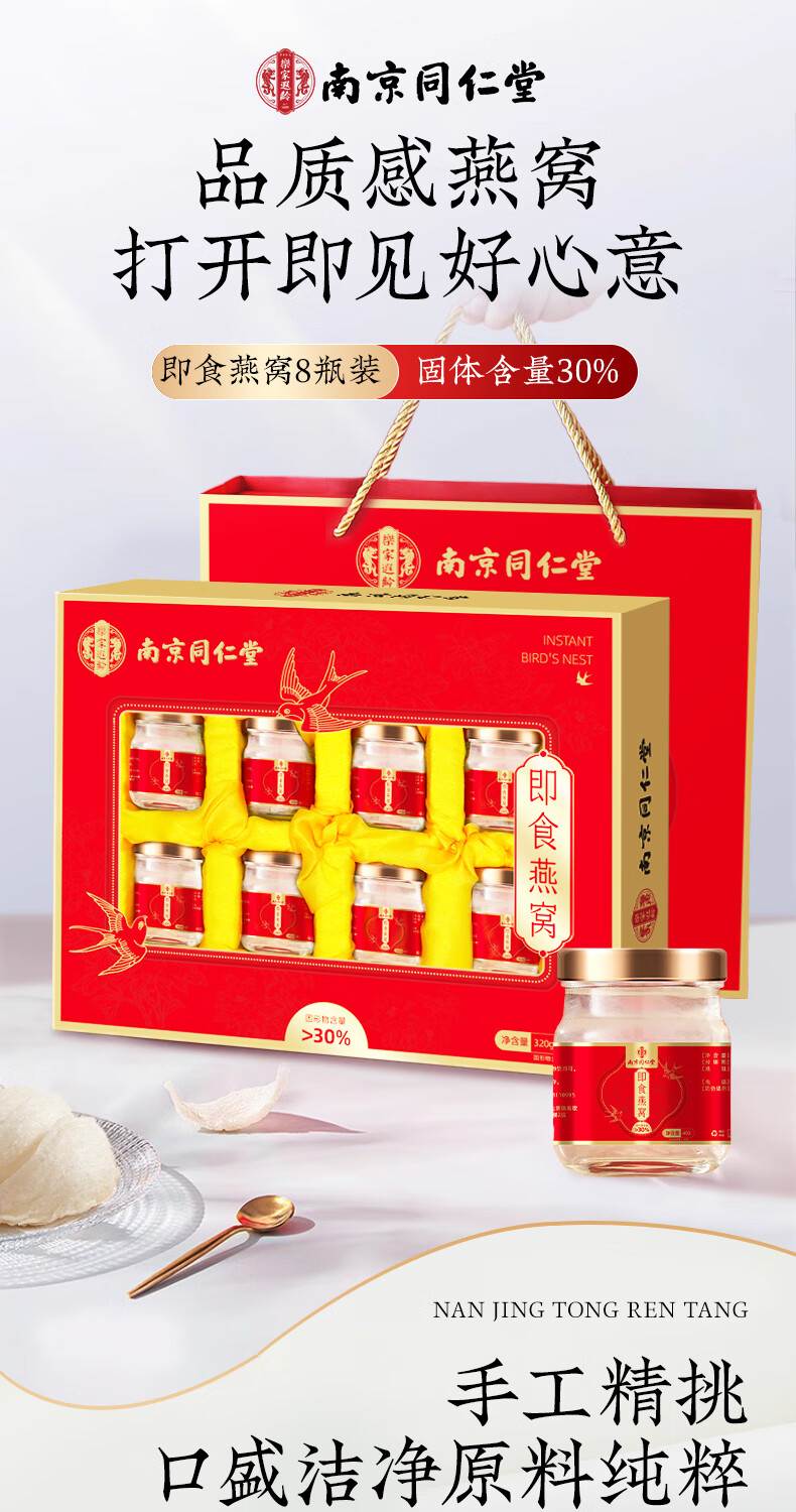 同仁堂 即食燕窝礼盒8瓶装 进口金丝燕低糖低脂 孕产妇坐月子滋补品送父母长辈营养品妈妈生日的礼物