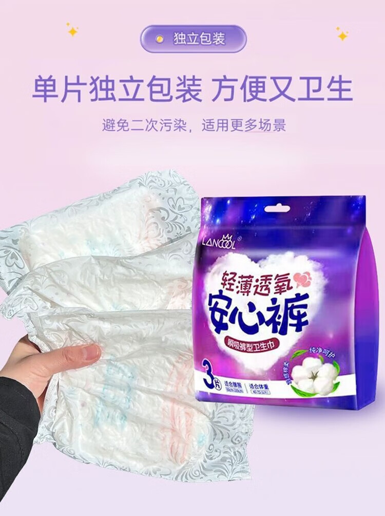 AILUKI正品安睡裤生理期专用内裤夜用量大防测漏薄款纸尿裤大姨妈月经期 8包【共24条】超值 热卖 L码【适用于体重80-120斤】