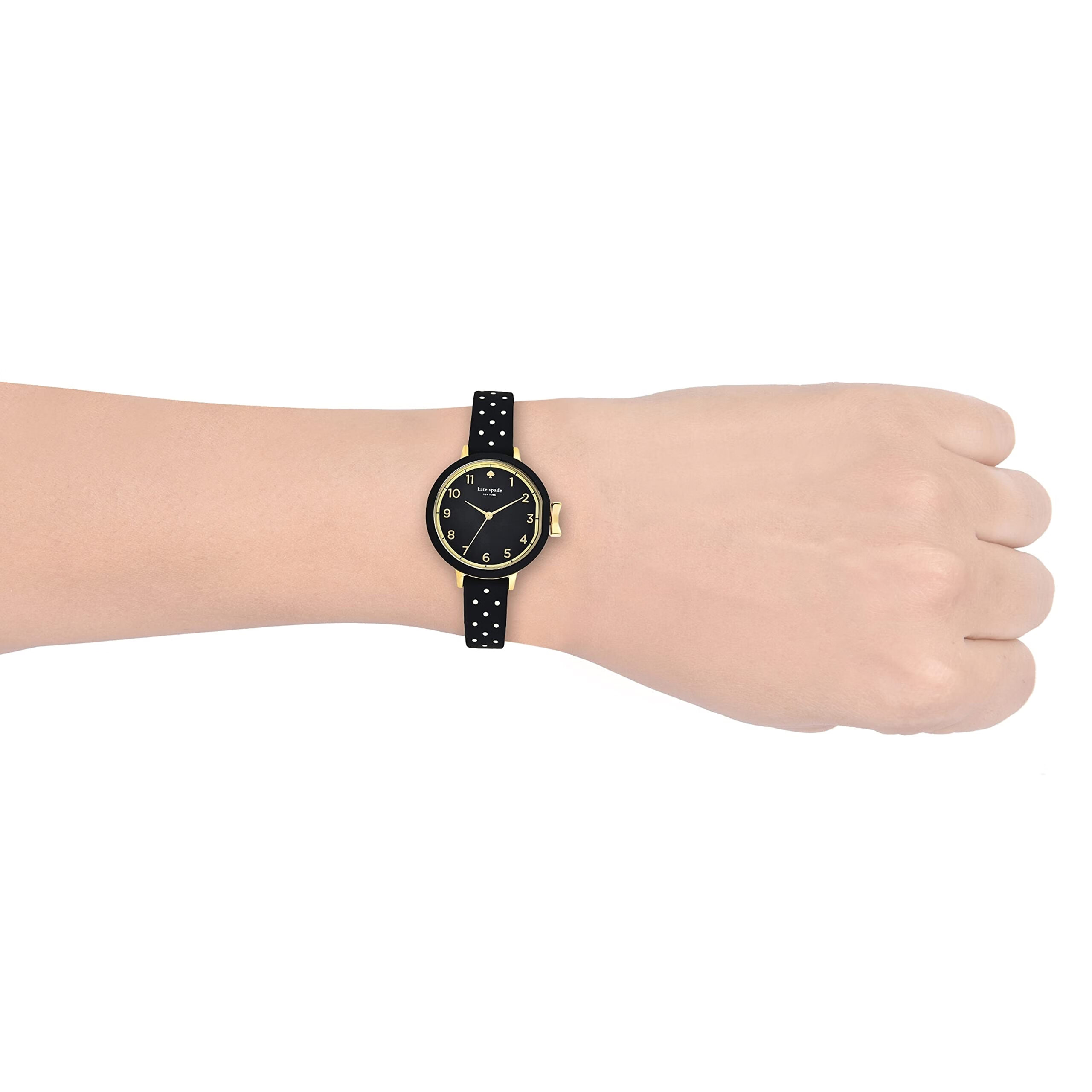 kate spade new york 女士公园系列 硅胶表带 时尚腕表 金色、黑色/白色圆点 均码
