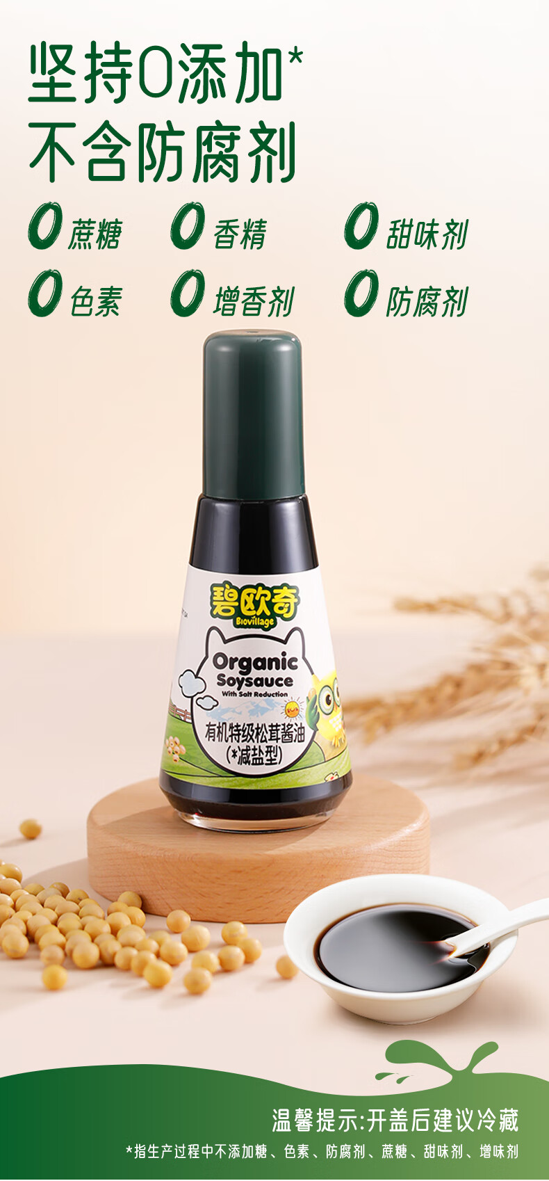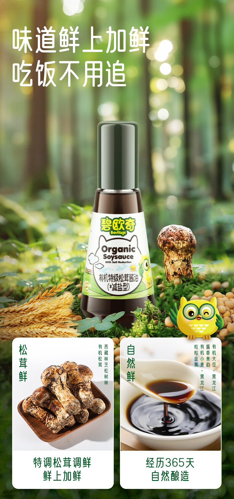 碧欧奇有机松茸酱油儿童调味料辅食喷头控量减盐不添加 有机特级松茸酱油100ml*2