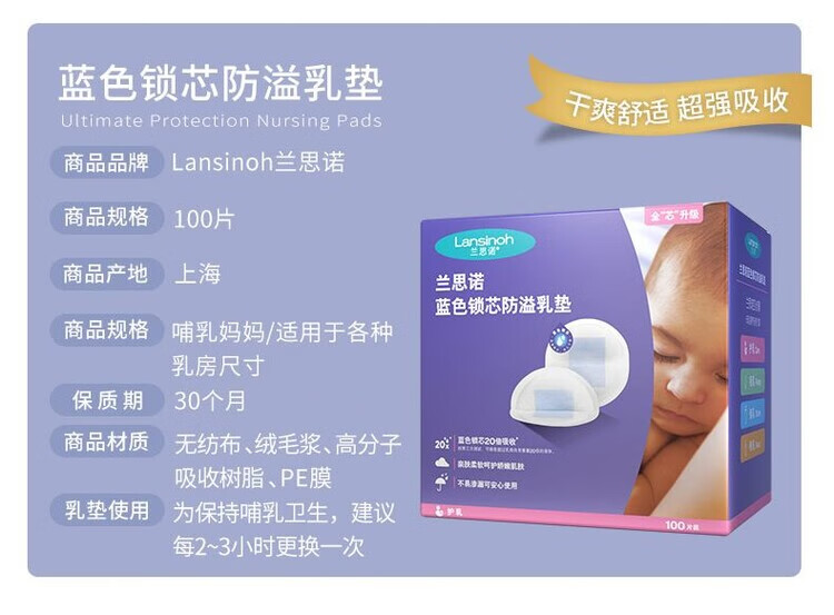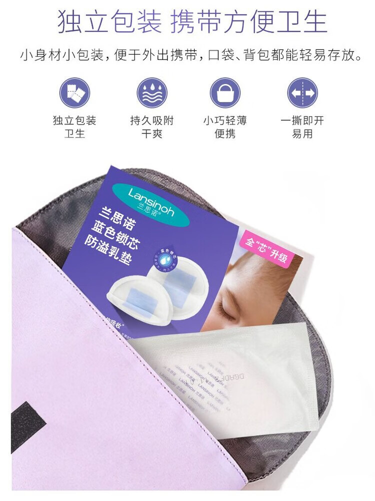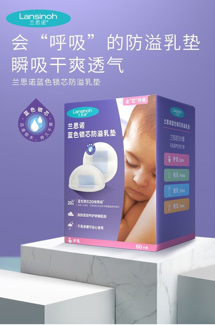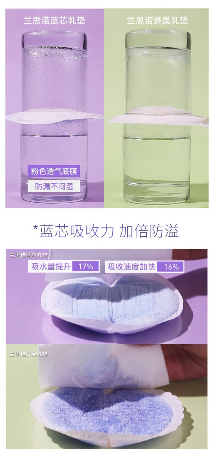 AILUKI兰思诺蓝芯乳垫轻薄一次性乳产妇乳垫超薄透气大号防漏防溢乳垫 蓝心乳垫36片