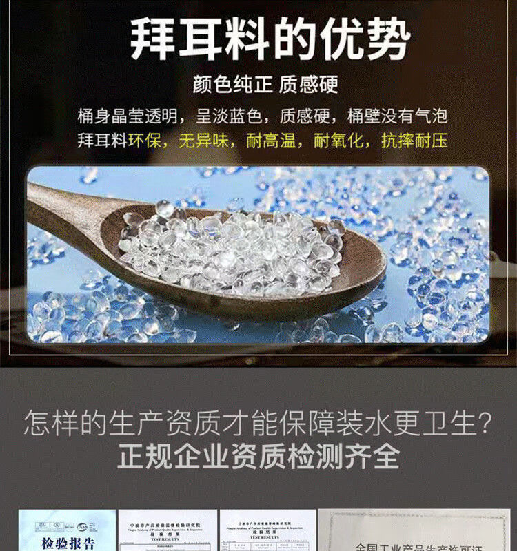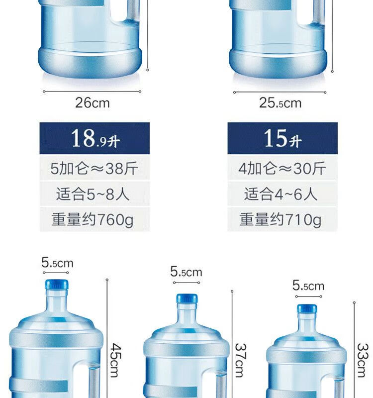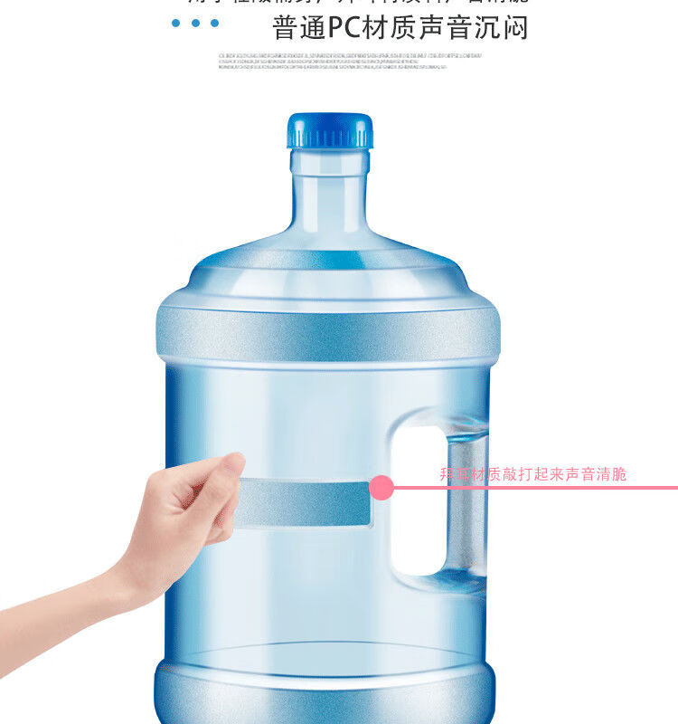 AILUKI纯净水桶加厚小型饮水机桶家用手提大桶PC带盖储水桶户外矿泉水桶 【透色蓝/PC18.9升【环保储水/健康饮用