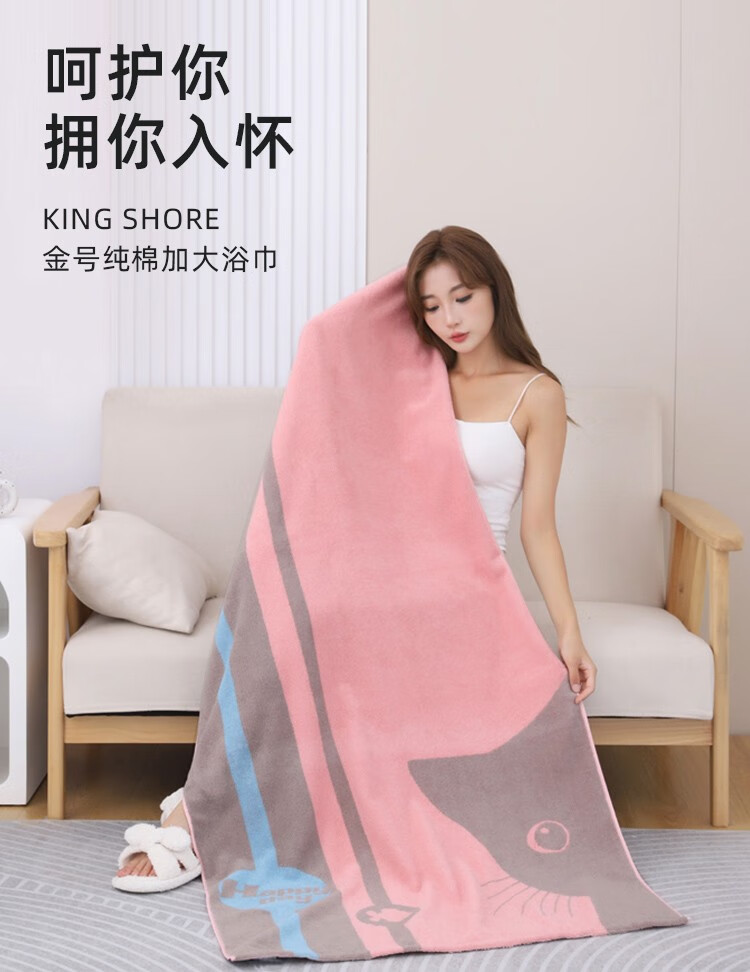 金号(KINGSHORE)浴巾卡通纯棉加厚家用吸水洗澡巾速干男女情侣大号全棉可穿可裹巾 [标准款350g]140*72cm红色