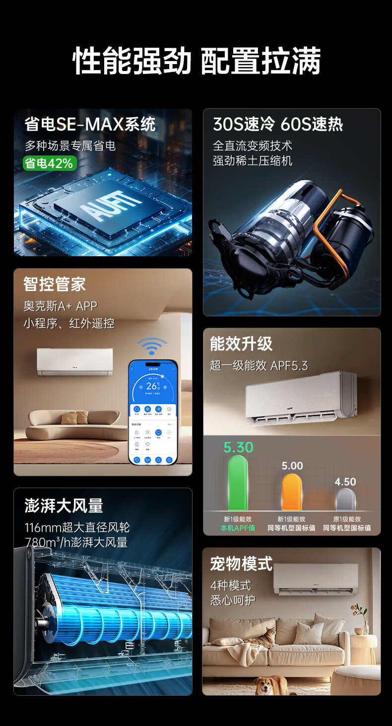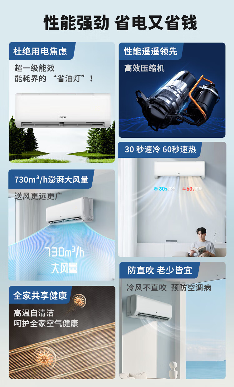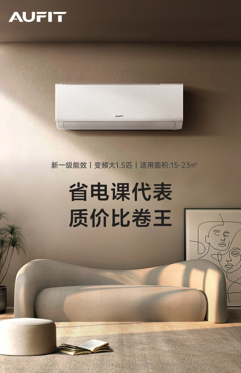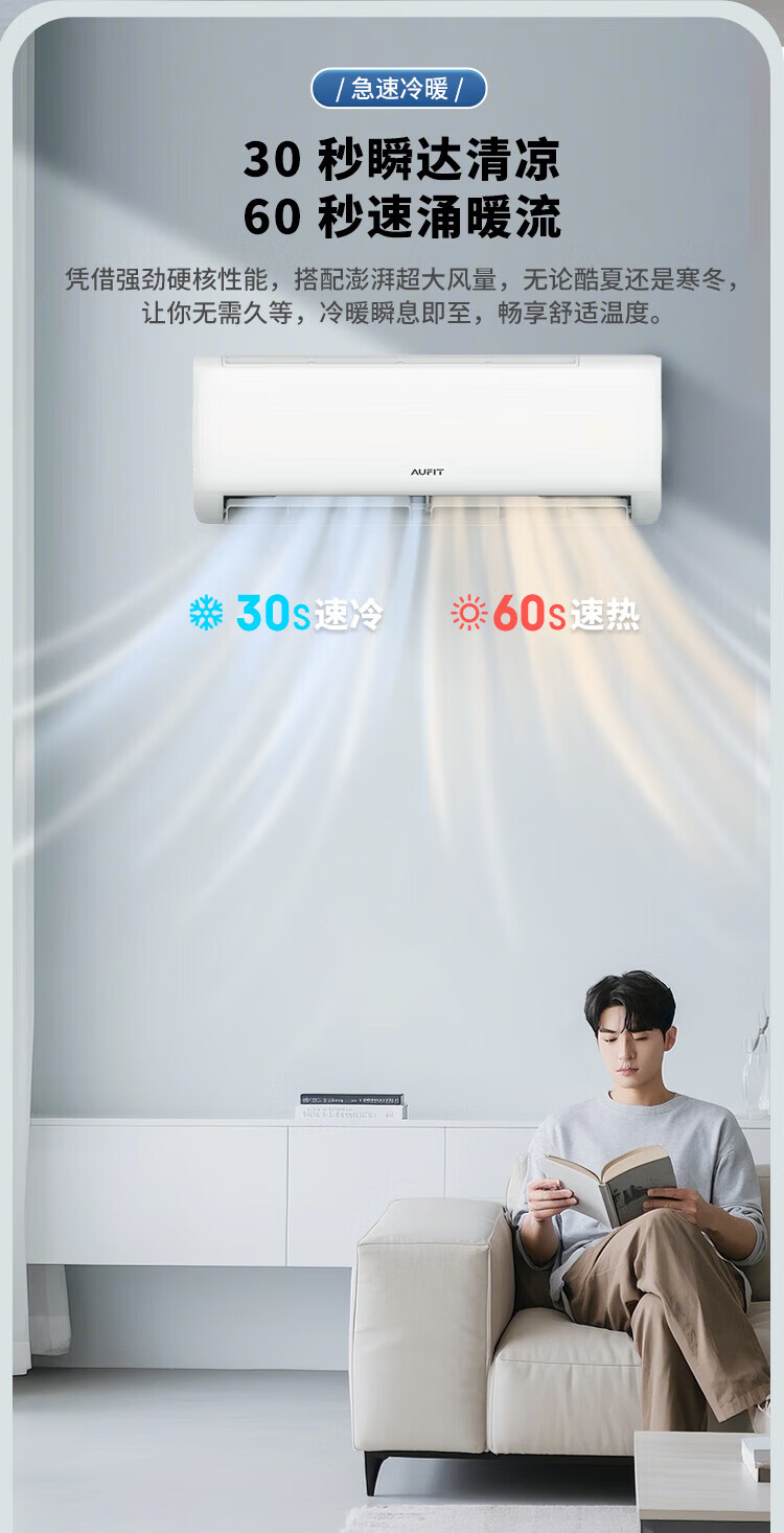 AUFIT空调奥克斯出品 25年新品新一级变频冷暖大3匹立柜式 柜机2匹1.5匹1匹挂机家用省电空调 以旧换新 大1.5匹 一级能效 【基础款】变频冷暖