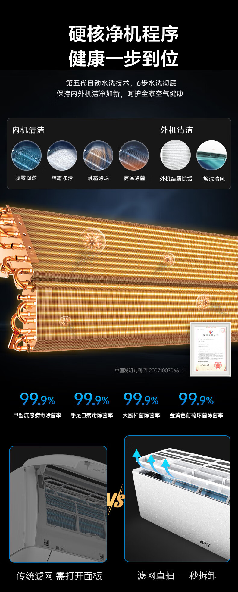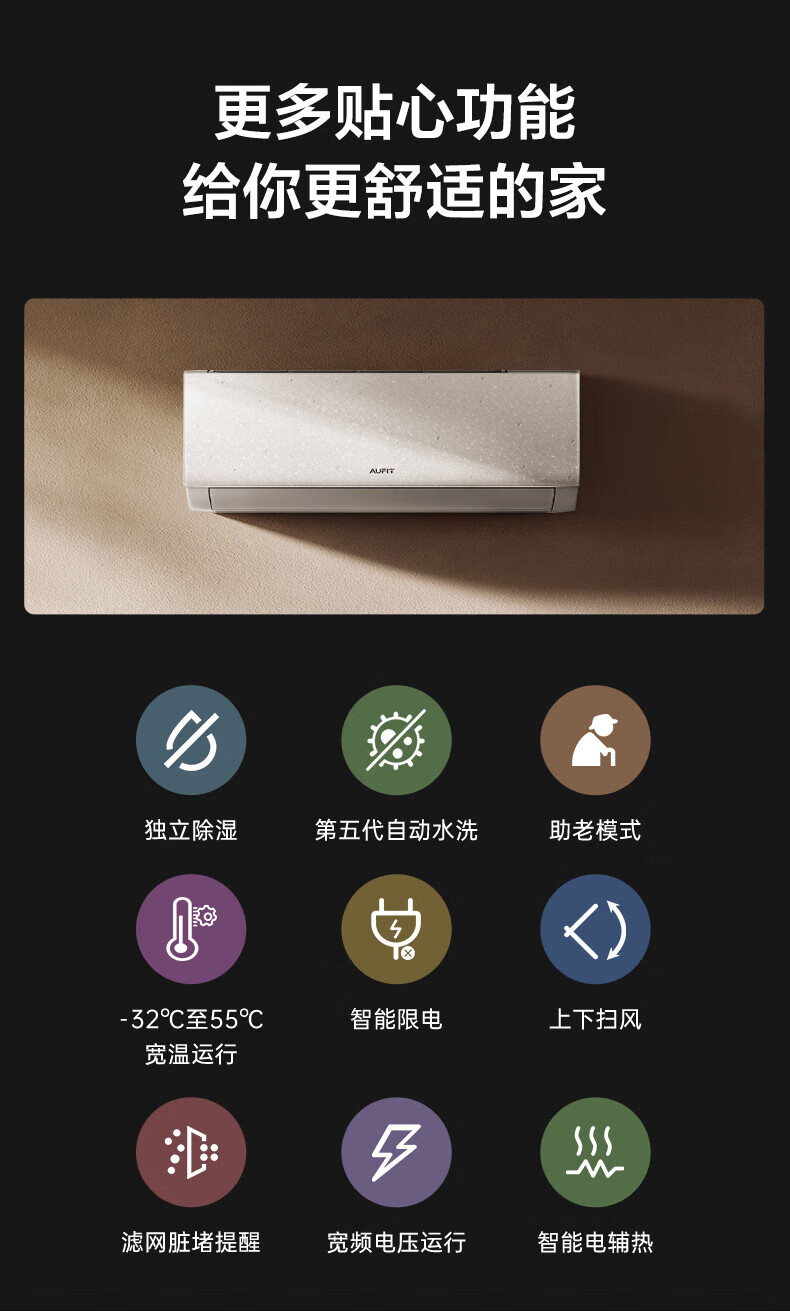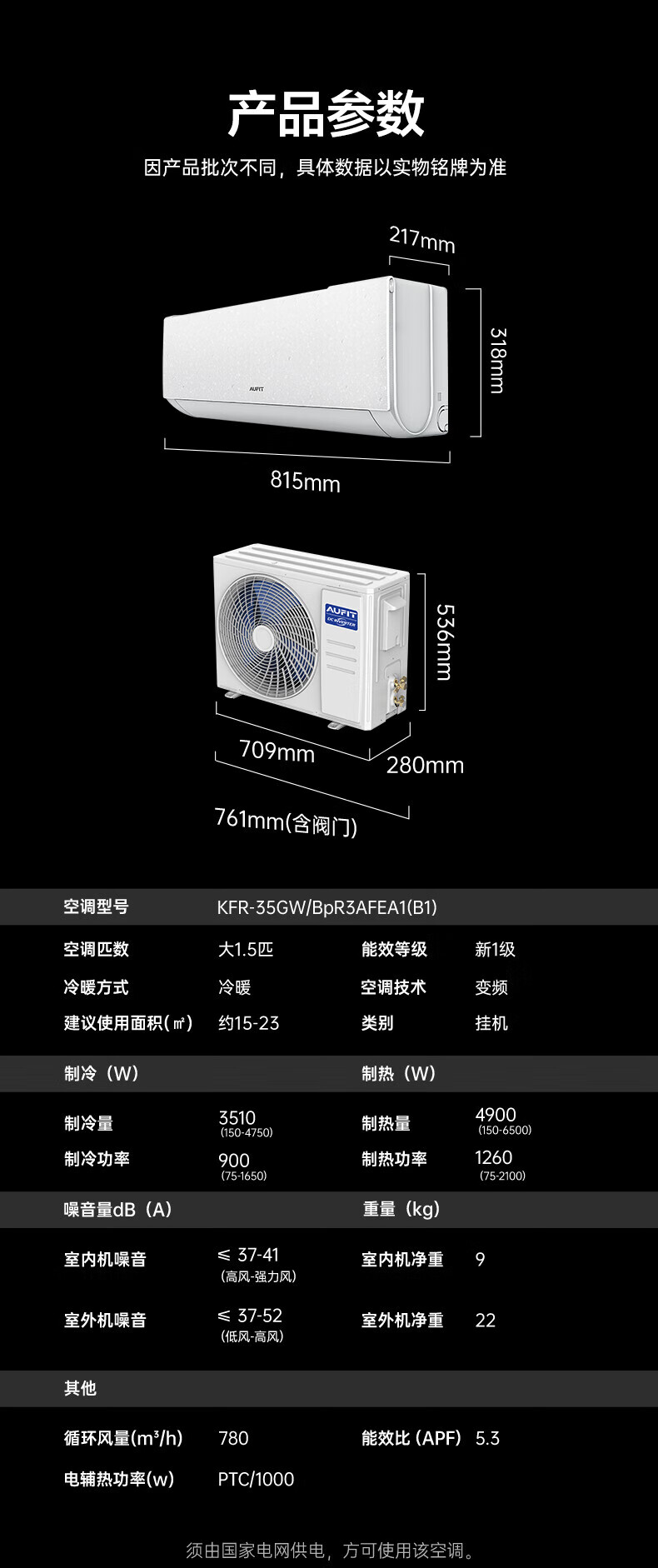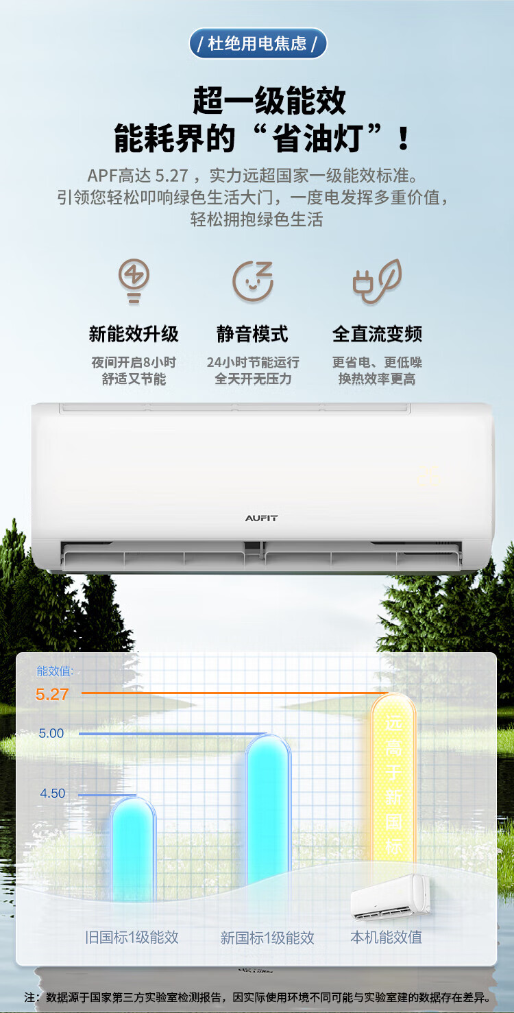 AUFIT空调奥克斯出品 25年新品新一级变频冷暖大3匹立柜式 柜机2匹1.5匹1匹挂机家用省电空调 以旧换新 大1.5匹 一级能效 【基础款】变频冷暖