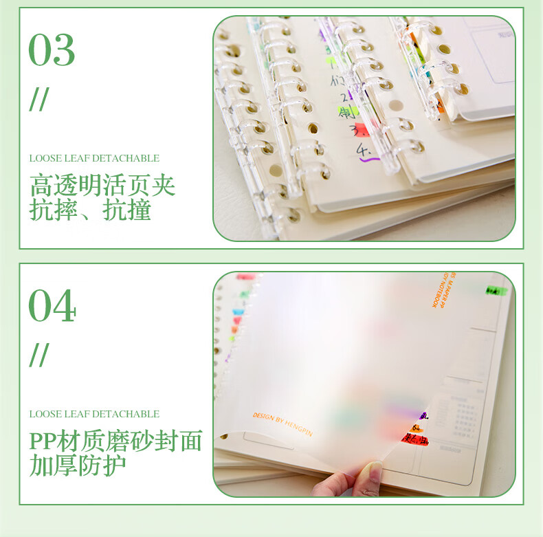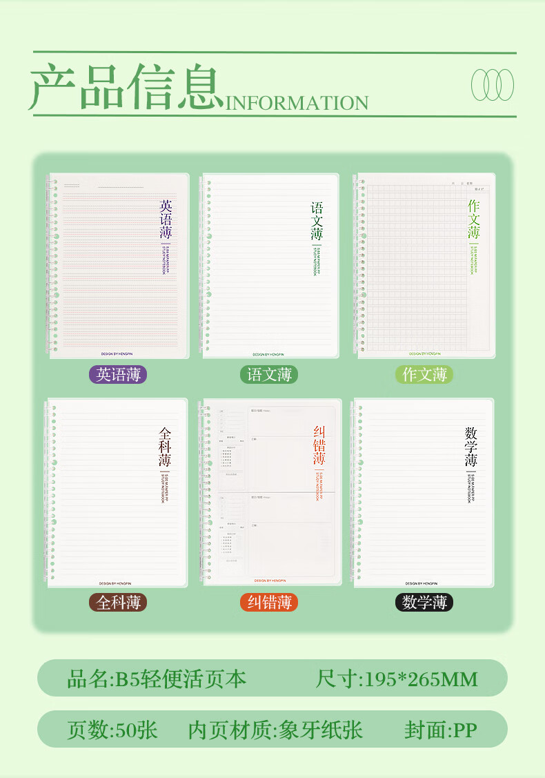 少年伴笔记本数学作业本高颜值简约B5大号活页本加厚学科本可拆卸学生课堂笔记错题本数学本数学簿两本装