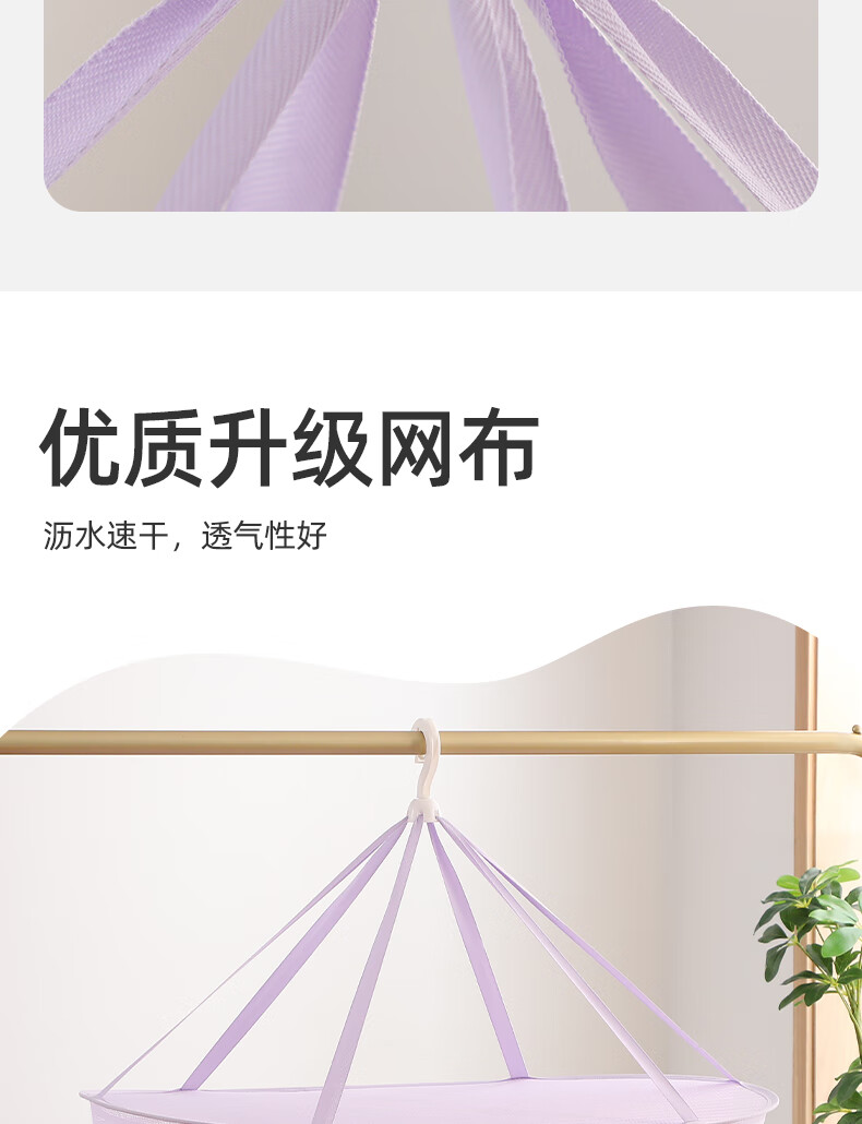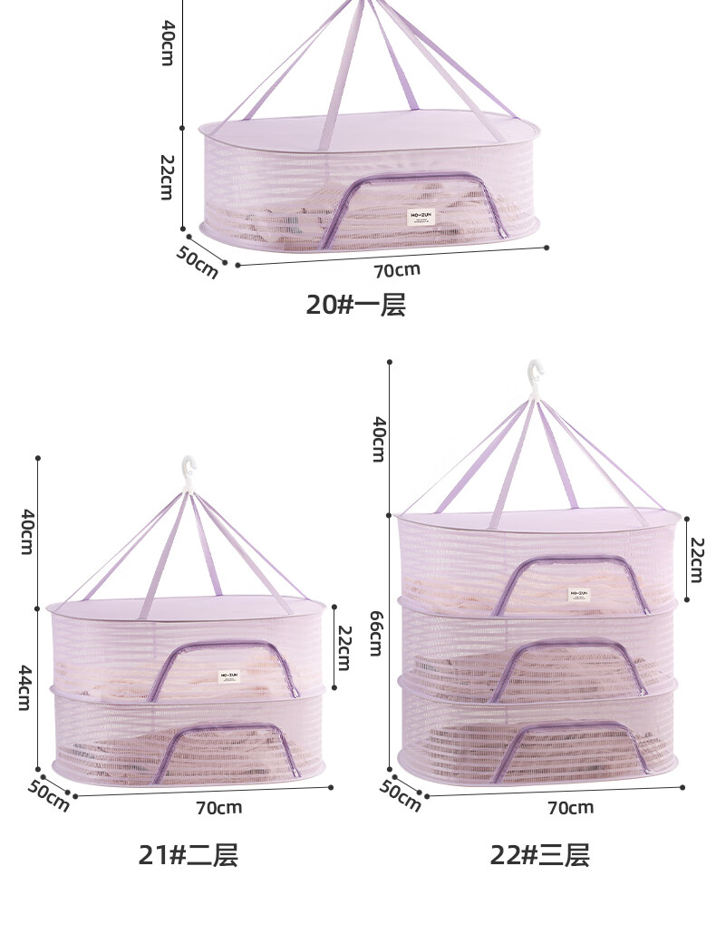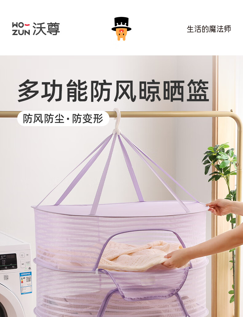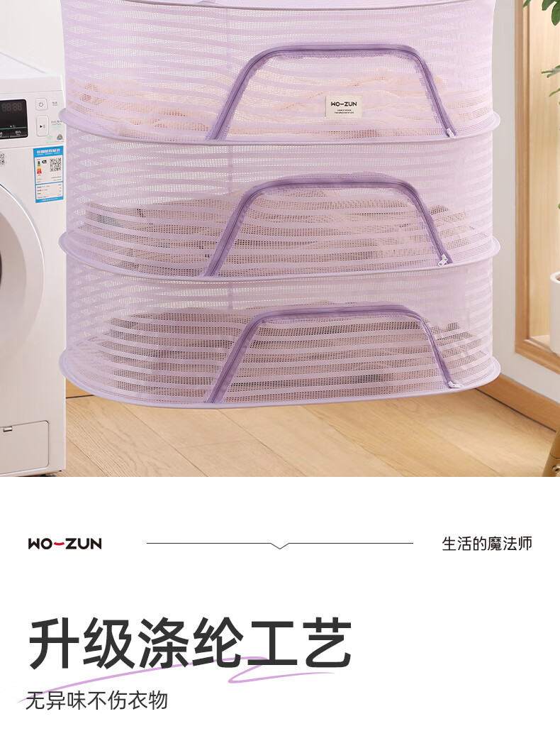 沃尊晾衣网家用防风晒衣服网兜羊毛衫专用晾衣架平铺晾晒网晒毛衣神器 紫色【一层拉链款】防变形晾衣网50x70cm